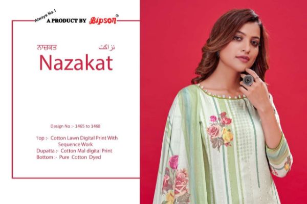 Other Details: | BIPSON Brings ..... Premium Cotton Collection _ NAZAKAT - 04 TOP :- _ Cotton Lawn Digital Print With Sequence EMBROIDERY Work .2.5MTR BOTTOM :- _PURE Soft COTTON DYED 2.7mtr DUPATTA :- _ Cotton Mal Digital Print .2.25mtr @695 per pcs . Set to set |
