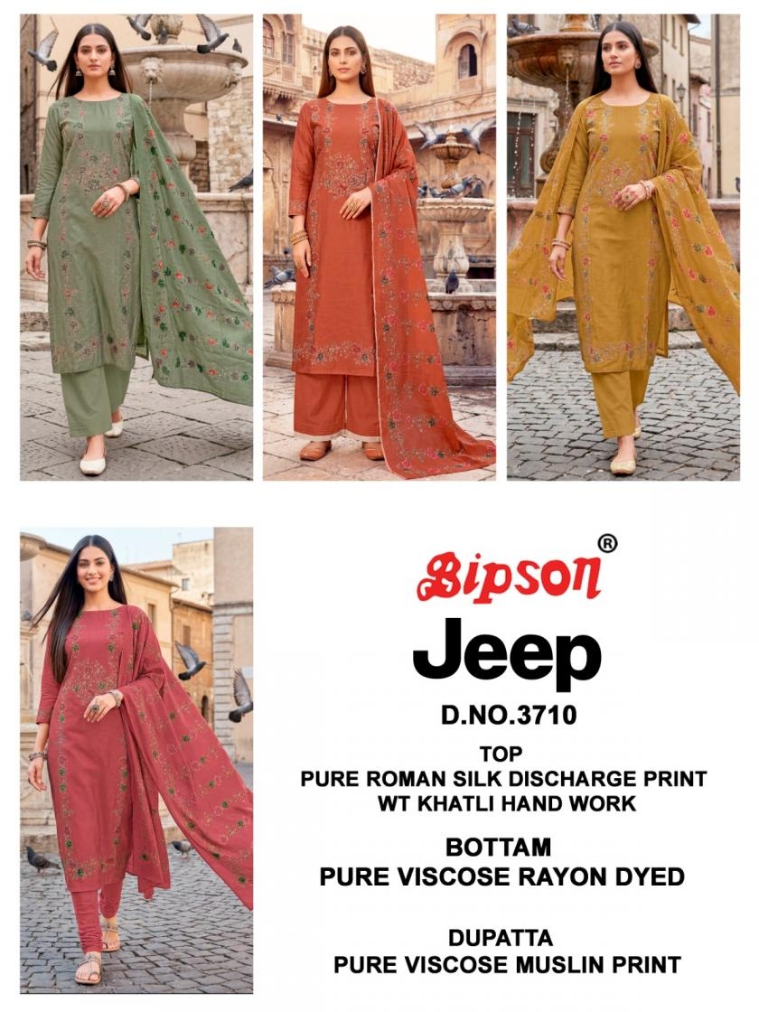 | Name: | Bipson Prints Jeep Wranglar 3710 Roman Silk Dress Materials | |