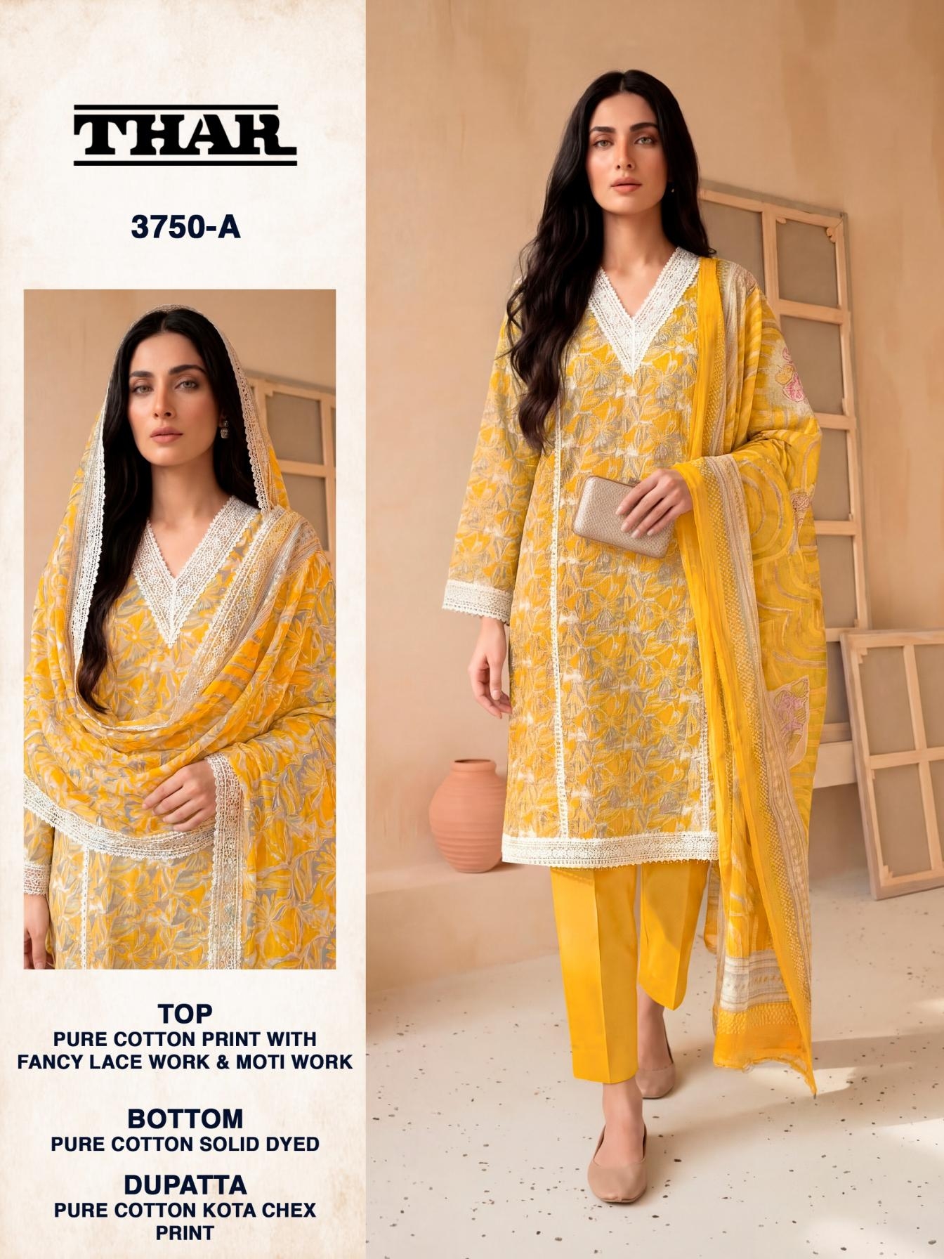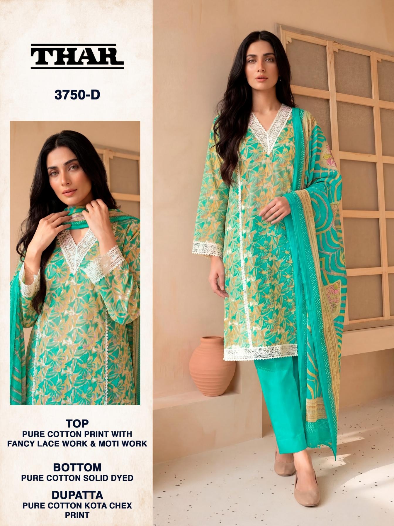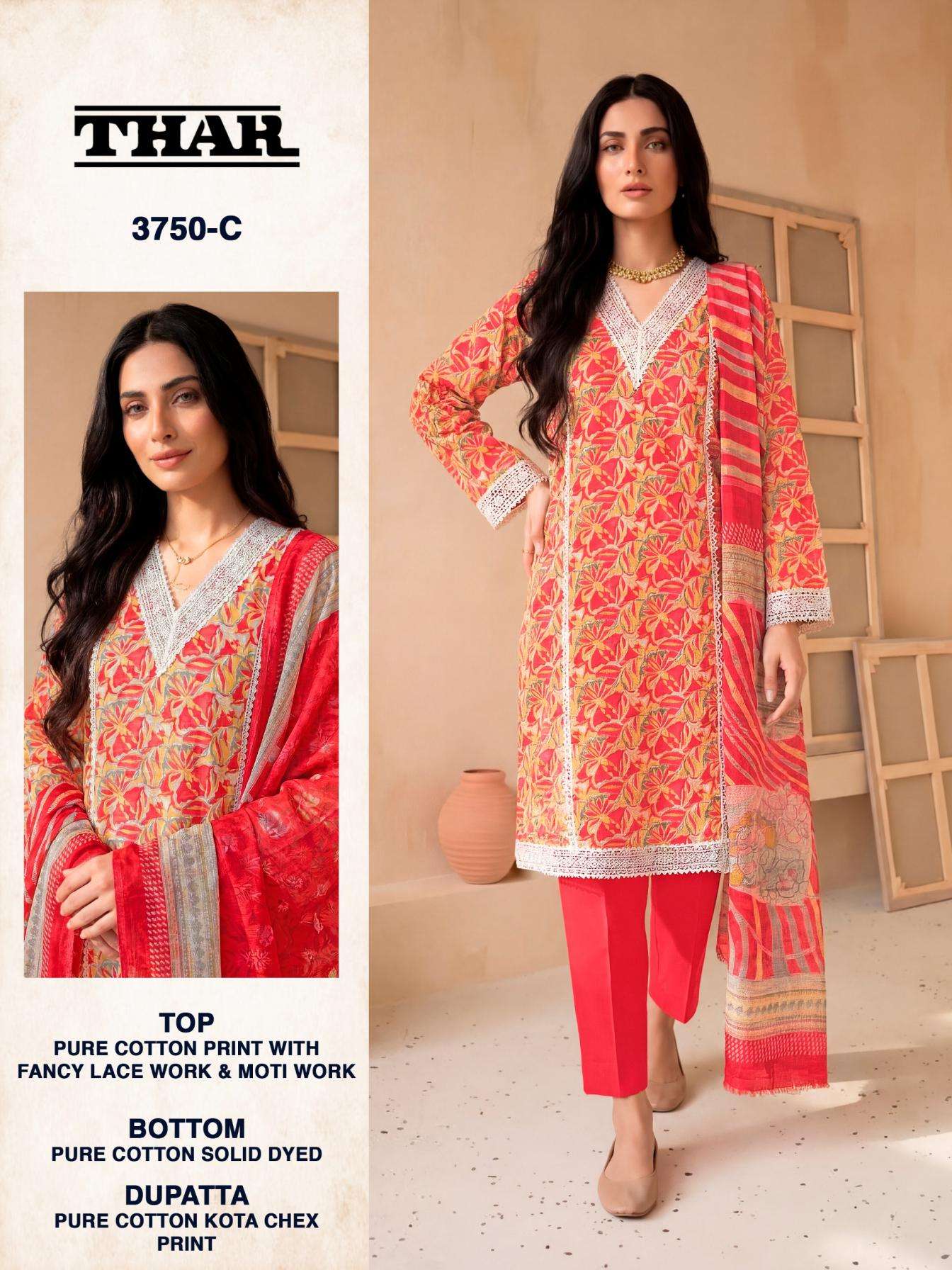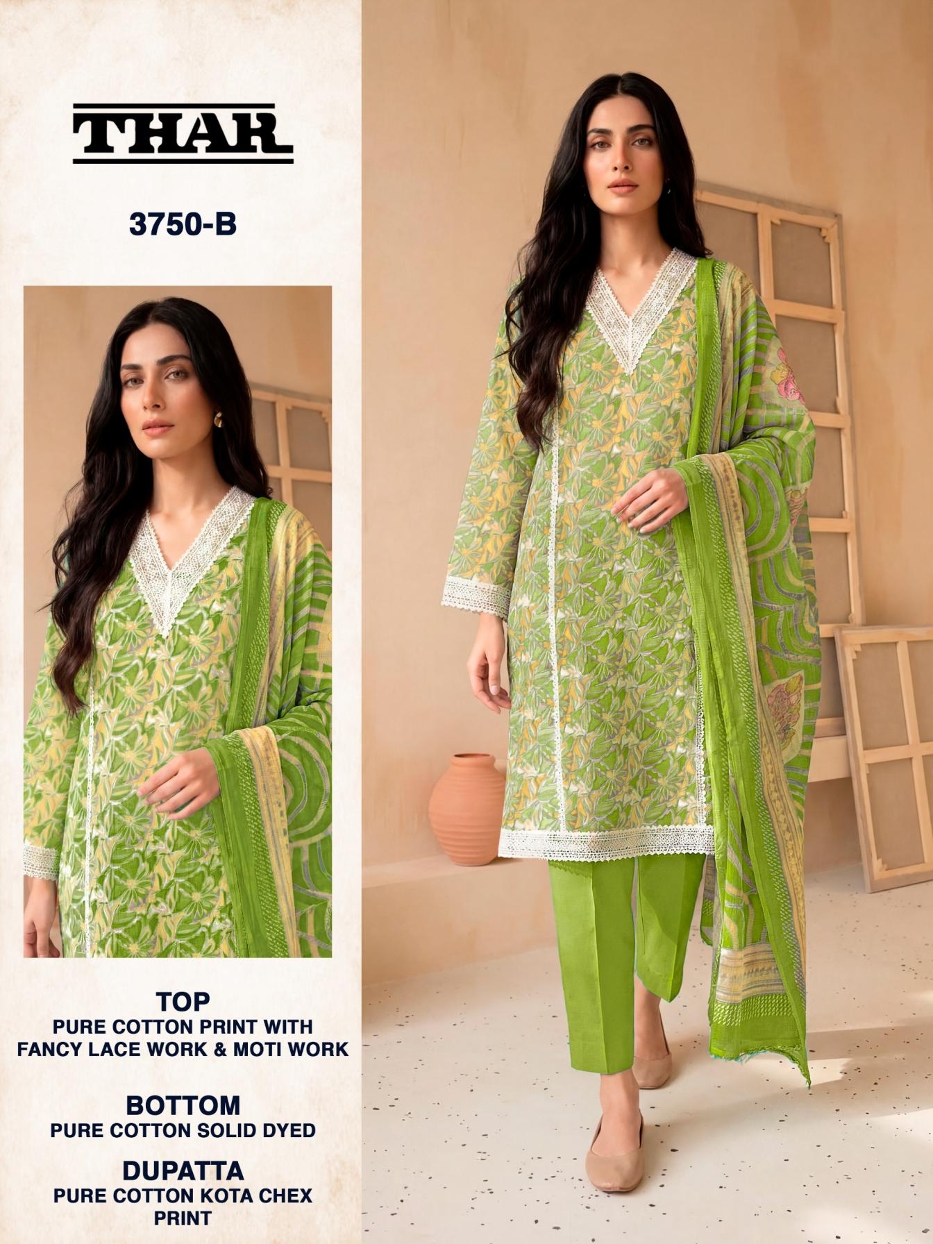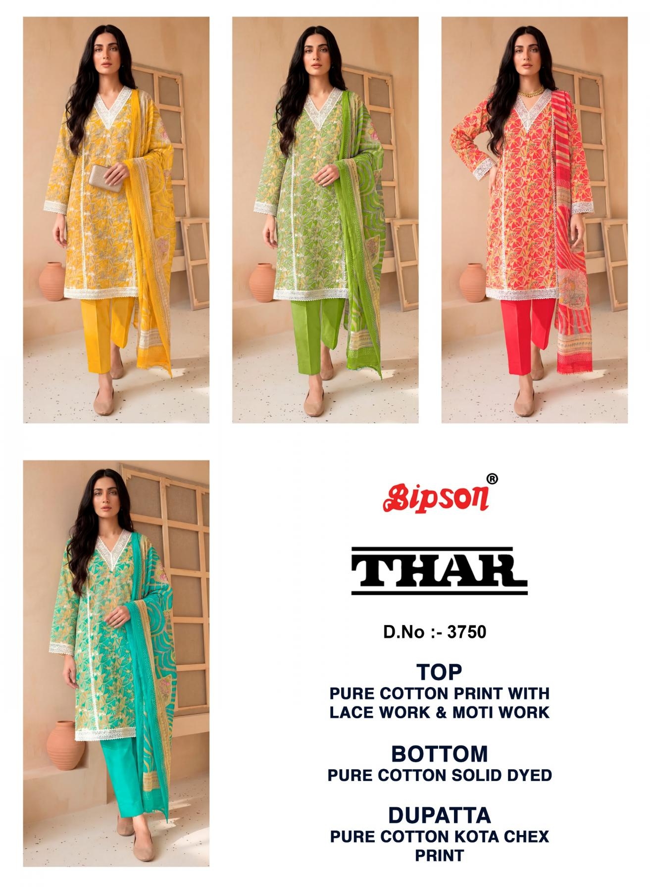 | Name: | Bipson Prints Thar 3750 Pure Cotton Print With Fancy Lace & Moti Work Wholesale Suit | |