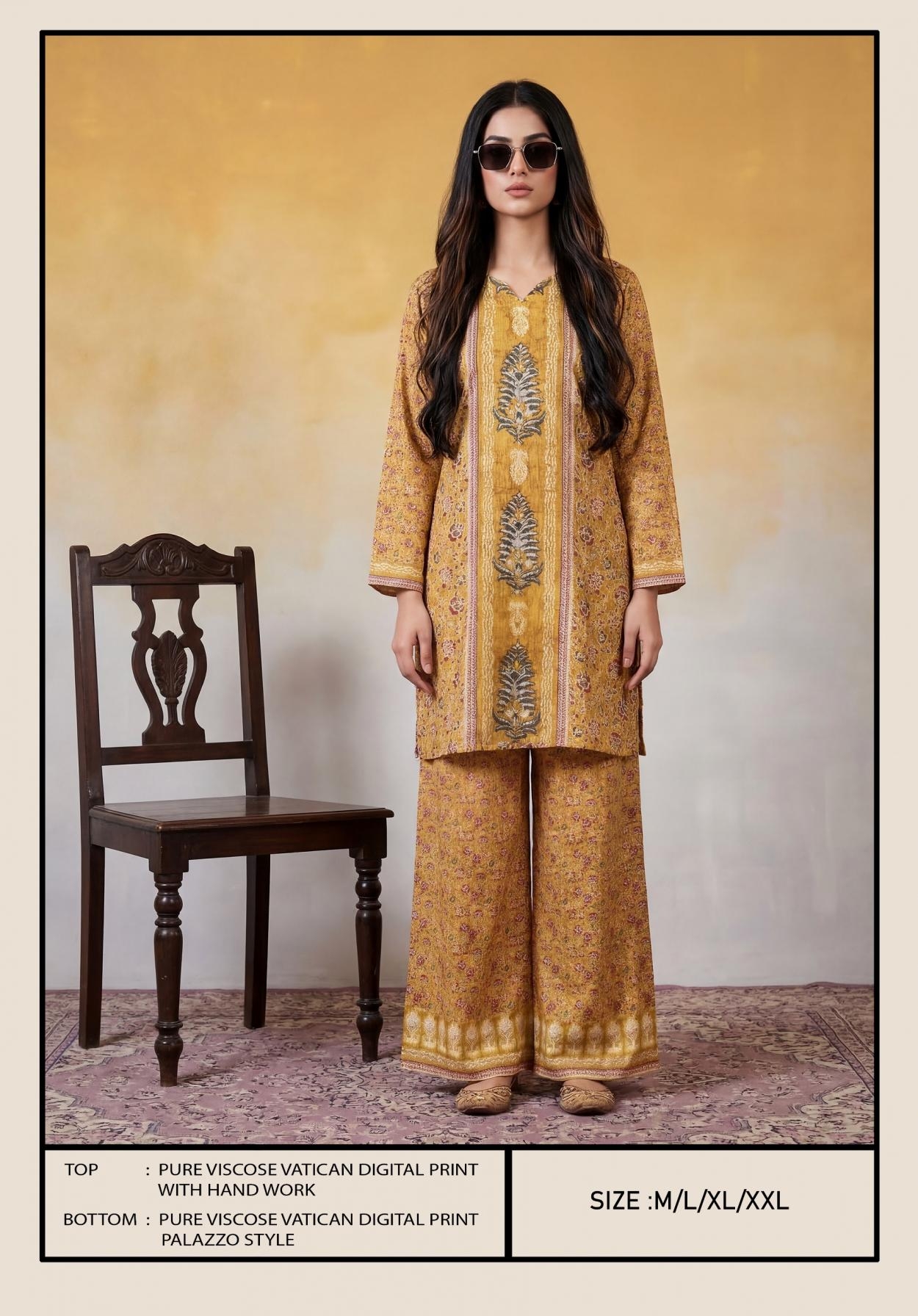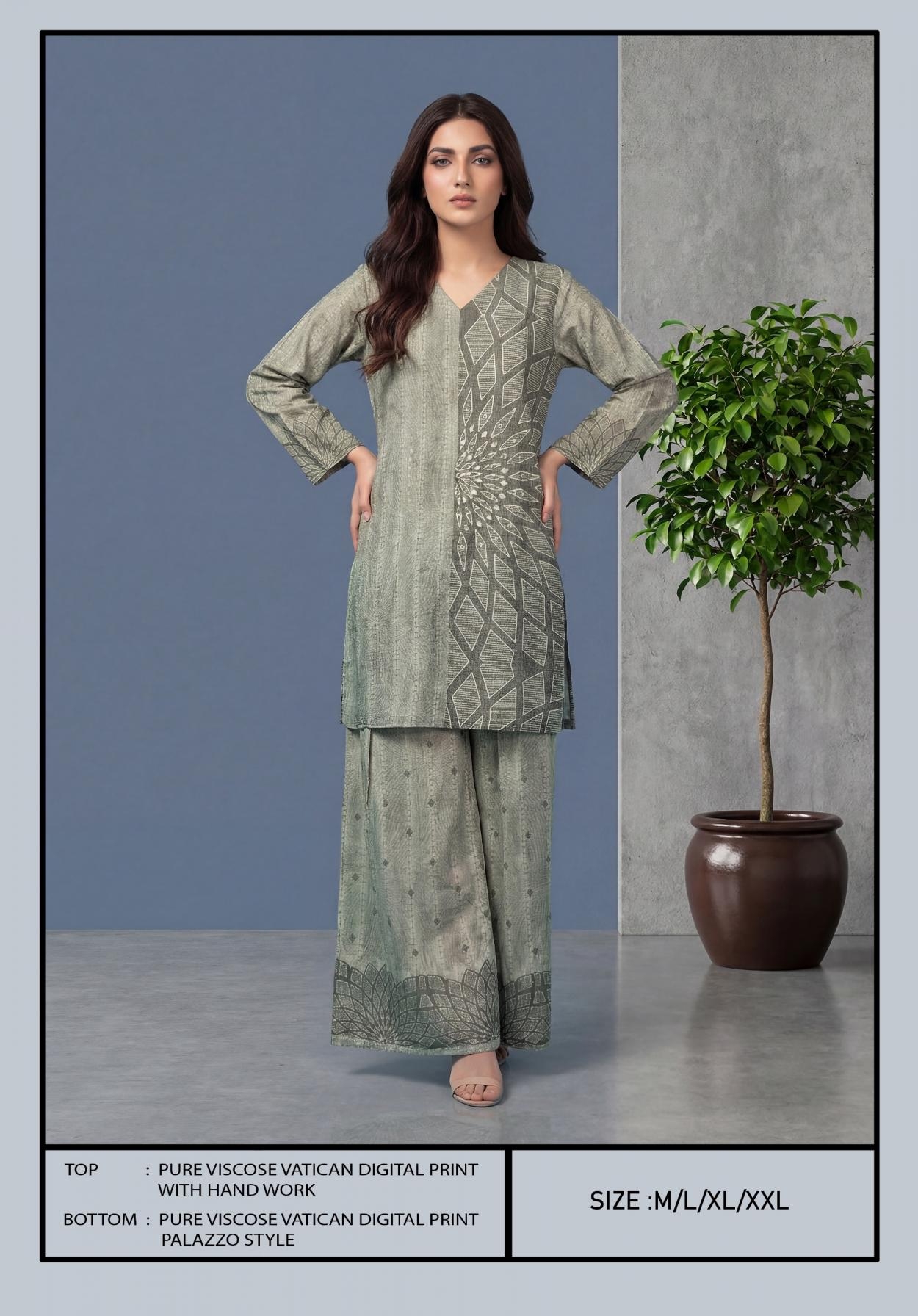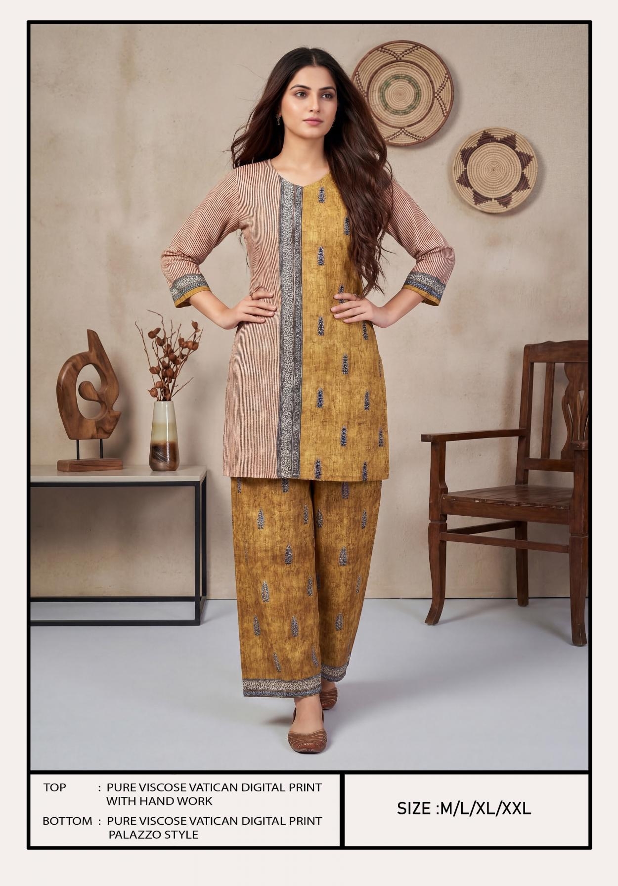 | Other Details: | BIPSON PRINTS Top - Pure Viscose Vatican Digital Print With HandWork . Size Chart :- M-L-XL-XXL RATE : 651 /- PER PCS GST EXTRA COMBO PACK SET |