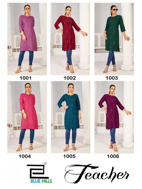 | Name: | Blue Hiils Teacher Series 1001-1006 Rayon Wholesale Kurti |