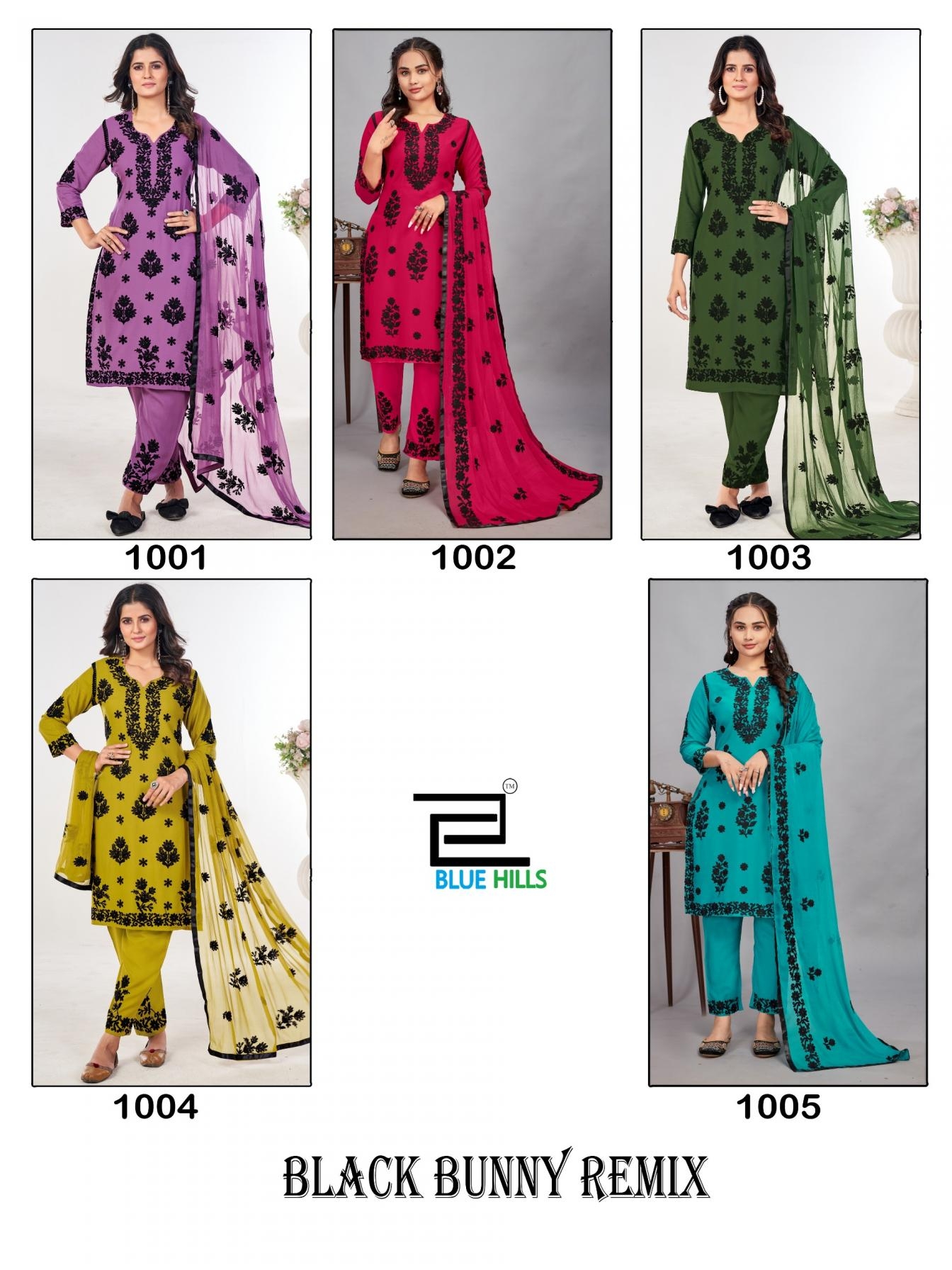 | Name: | Blue Hills Black Bunny Remix Series 1001 To 1005 Rayon Readymade Big Size Plazzo Suit In Wholesale Surat |