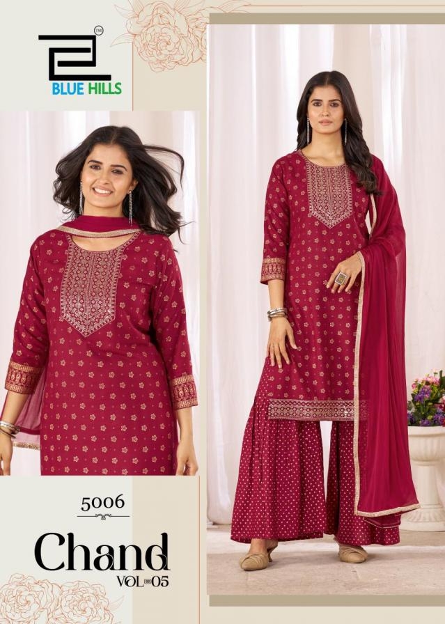 | Name: | Blue Hills Chand Vol 5 Series 5001 To 5006 Rayon Readymade Classic Sharara Suit In Wholesale Surat |