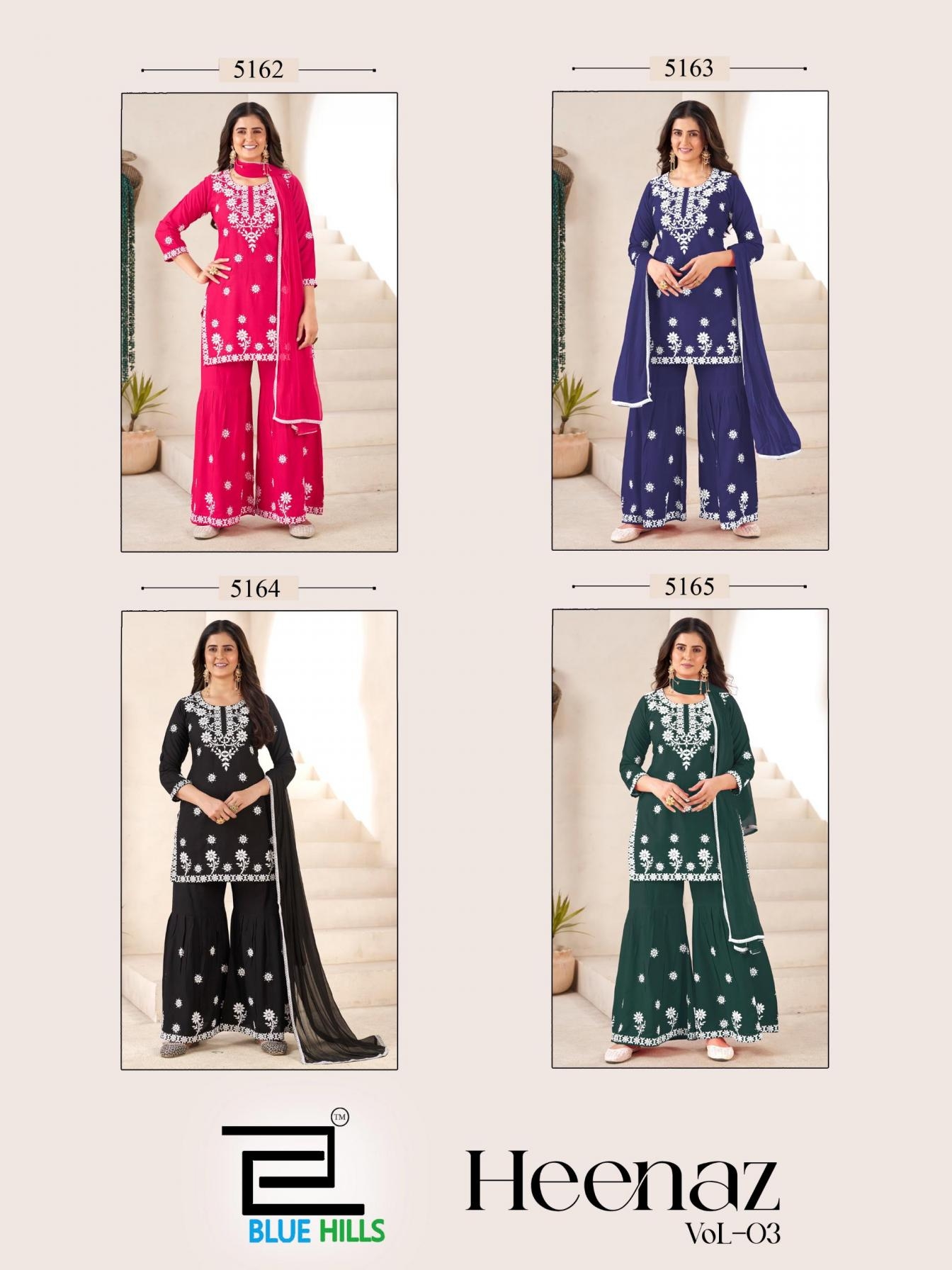 | Name: | Blue Hills Heenaz Vol 3 Series 5162-5165 Rayon Sharara Readymade Suit | |