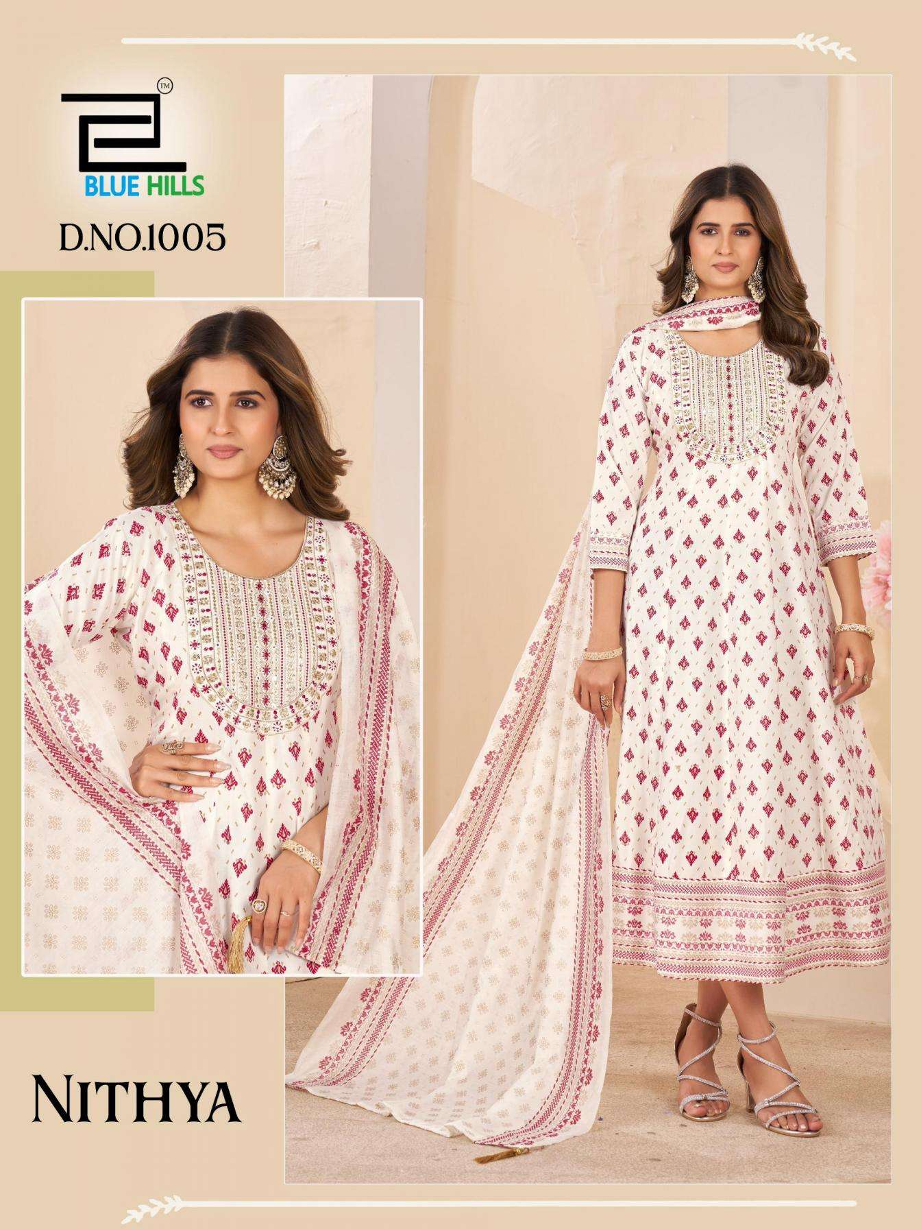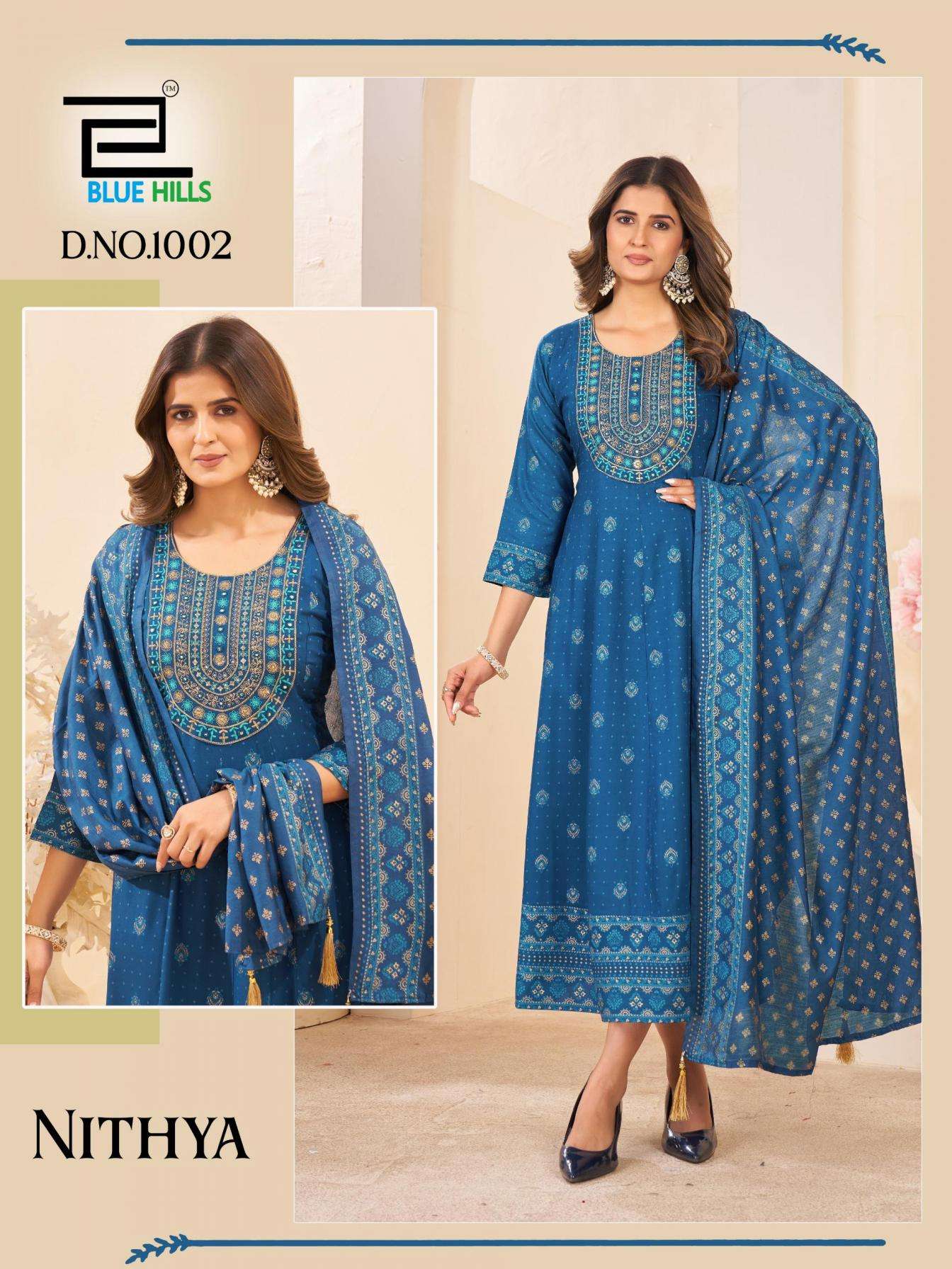 | Name: | Blue Hills Nithya Series 1001 To 1006 Fully Stitch Elegance Rayon Anarkali Big Size Gown With Dupatta In Wholesale Surat |