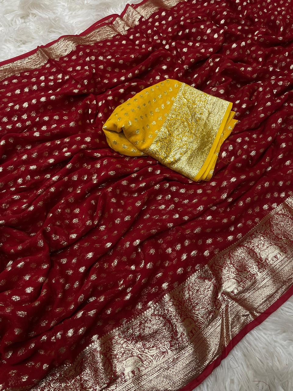 | Name: | Bt-0252 Pure Viscose Georgette Saree With Fancy Zari & Fancy Jacquard Border |