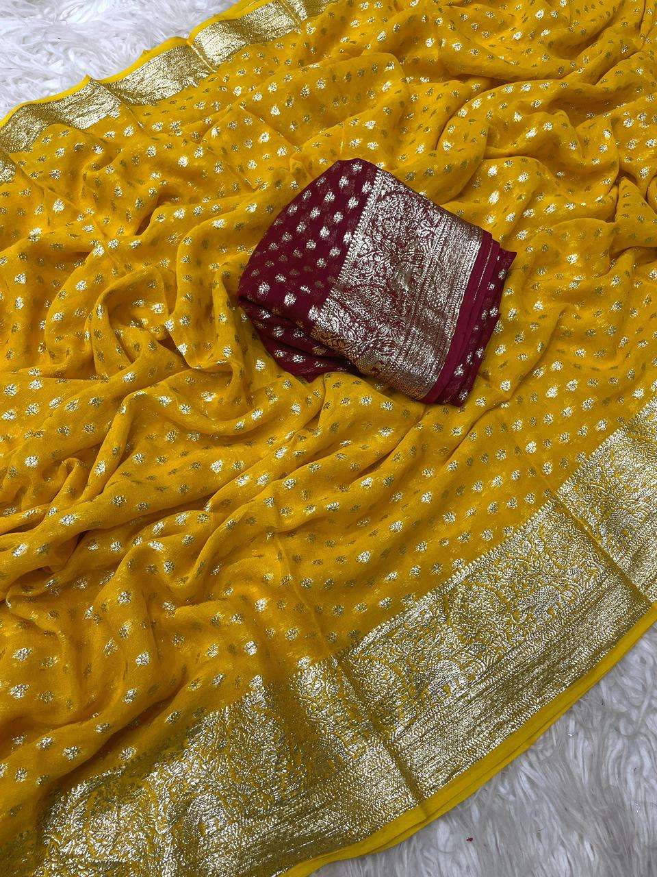 | Other Details: | New Cataloge Launch 🚀 ▶️ Fabric - Pure Viscose Georgette Saree With Fancy Zari & Fancy Jacquard Border With Fancy Viscose Georgette Silk Jecquard Blouse 👚 ▶️ Price:- 799/- 👉Full Ready Stock 😍We Believe In Quality 😍 |