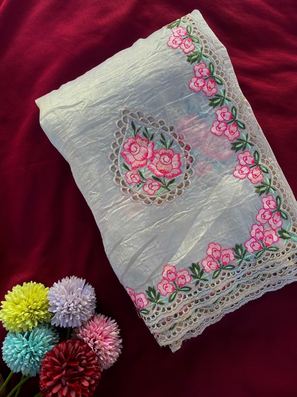 | Other Details: | ✨ Gold Crush Saree – Royal Glow in Every Fold BT-53 DsNo: 2004 Step into festive elegance with this shiny single-tone Gold Crush Saree, featuring multi-thread embroidered rose motifs across the body and border. Paired with a matching blouse with delicate small butti, this ensemble is perfect for festive and party wear, offering a refined blend of shimmer and royal charm. ✨🌹 Price : 1480/- Gst extra |