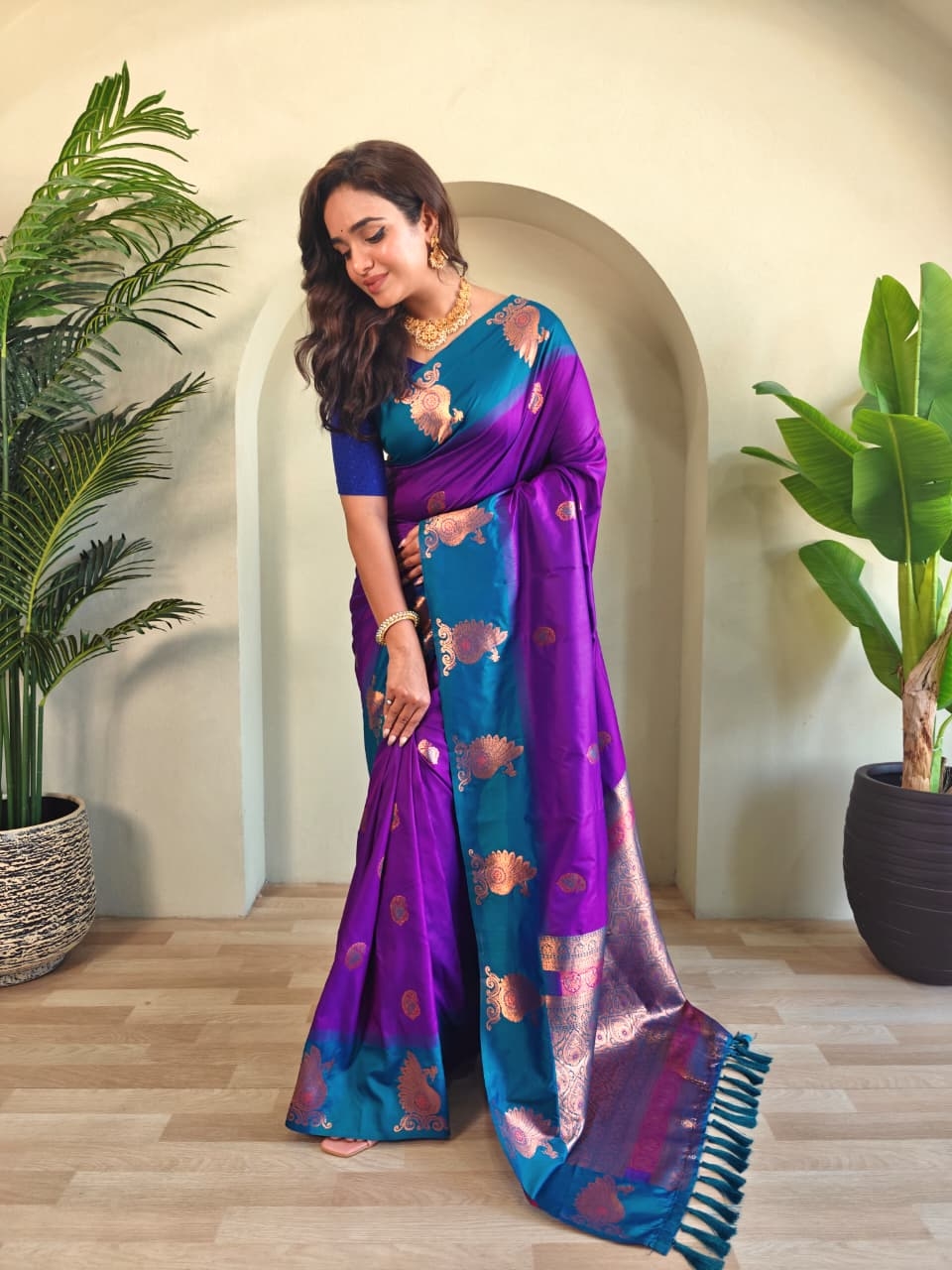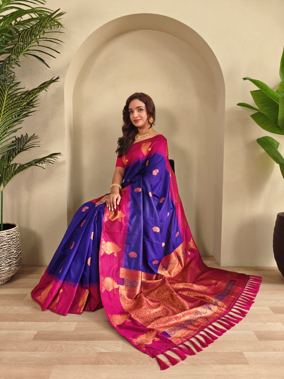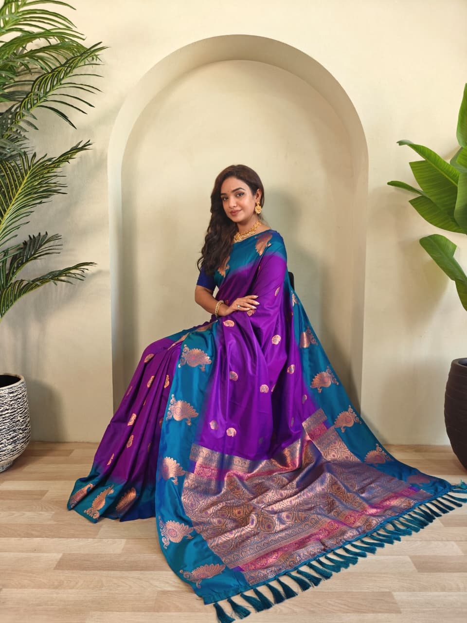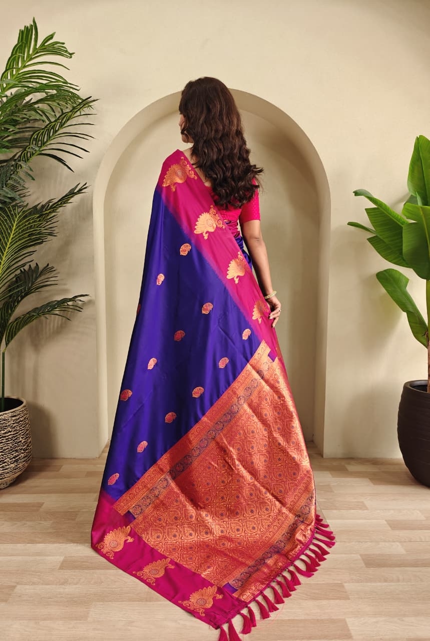 | Name: | Bt-53 Morpankh Dual Tone Silk Sarees With All Over Zari Weaves |