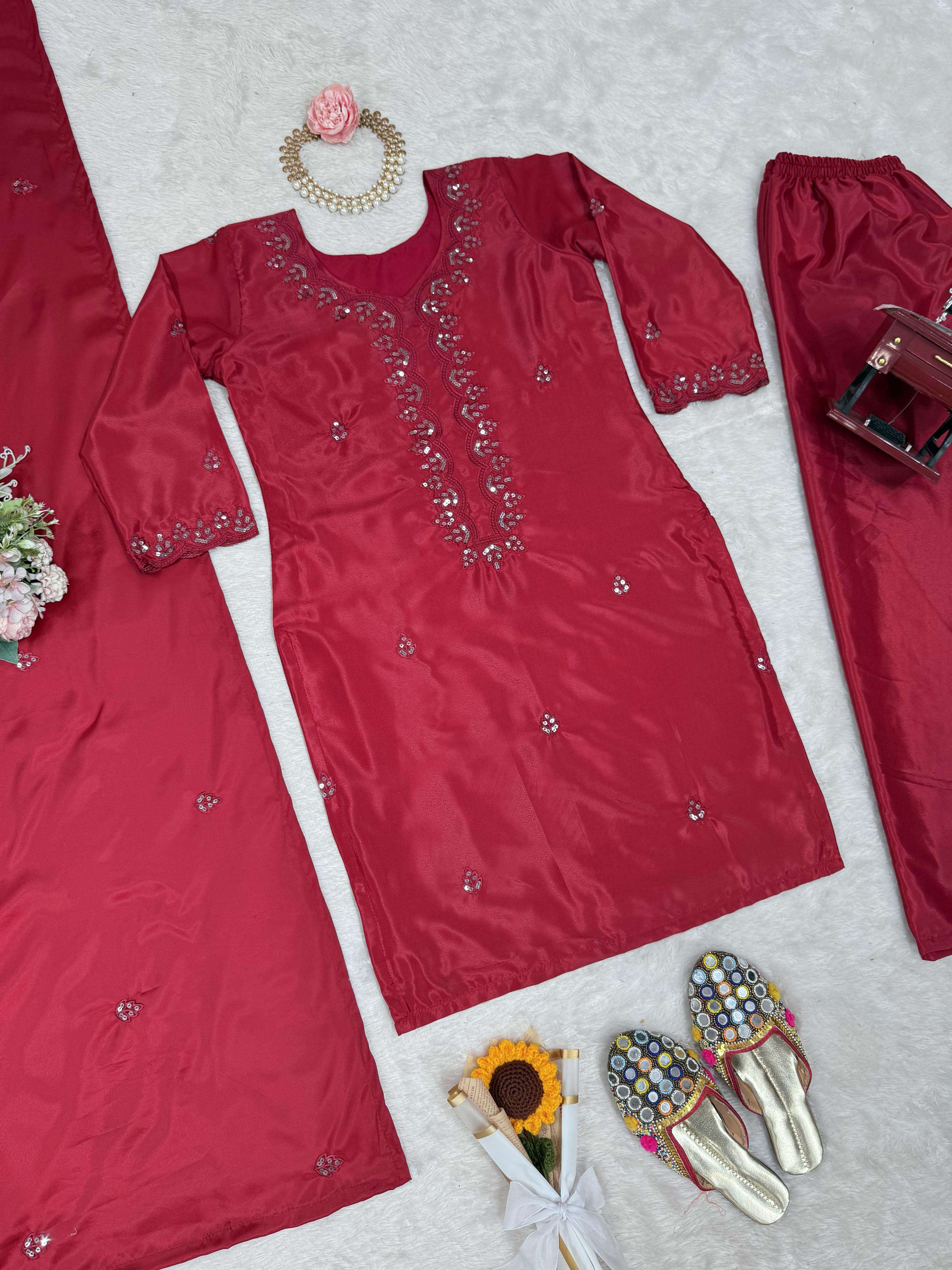 | Name: | Bt- 5868 Chinon Silk Full Stich Thread With Sequnce Suit In Wholesale Surat |
