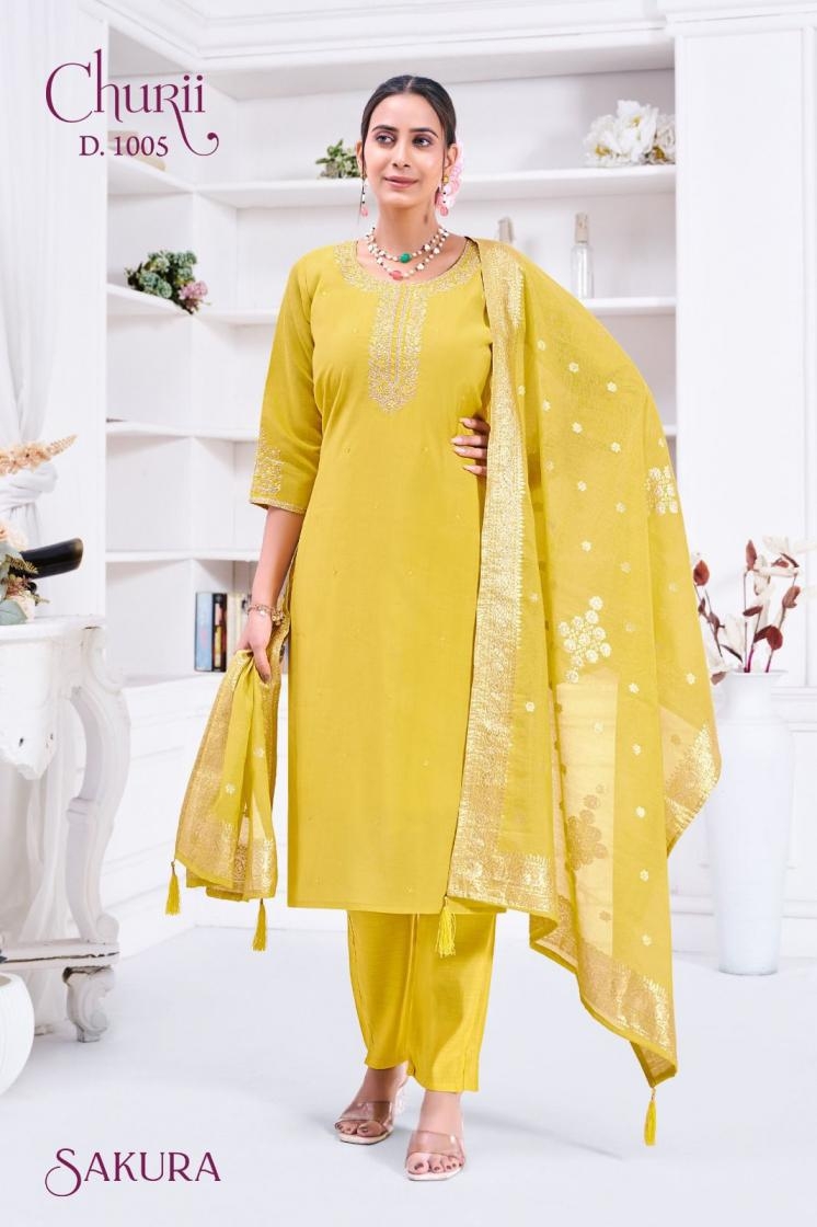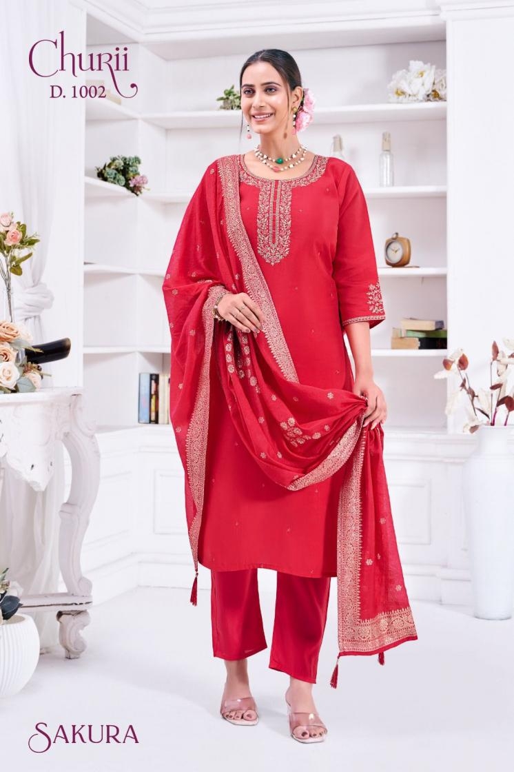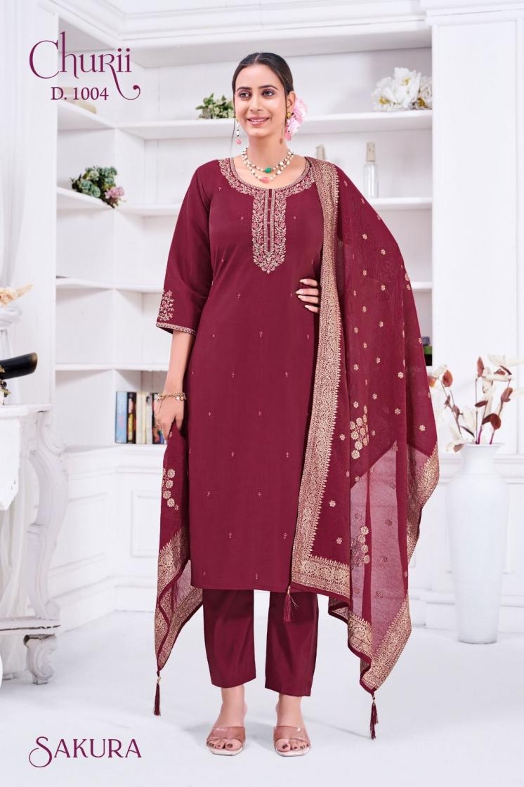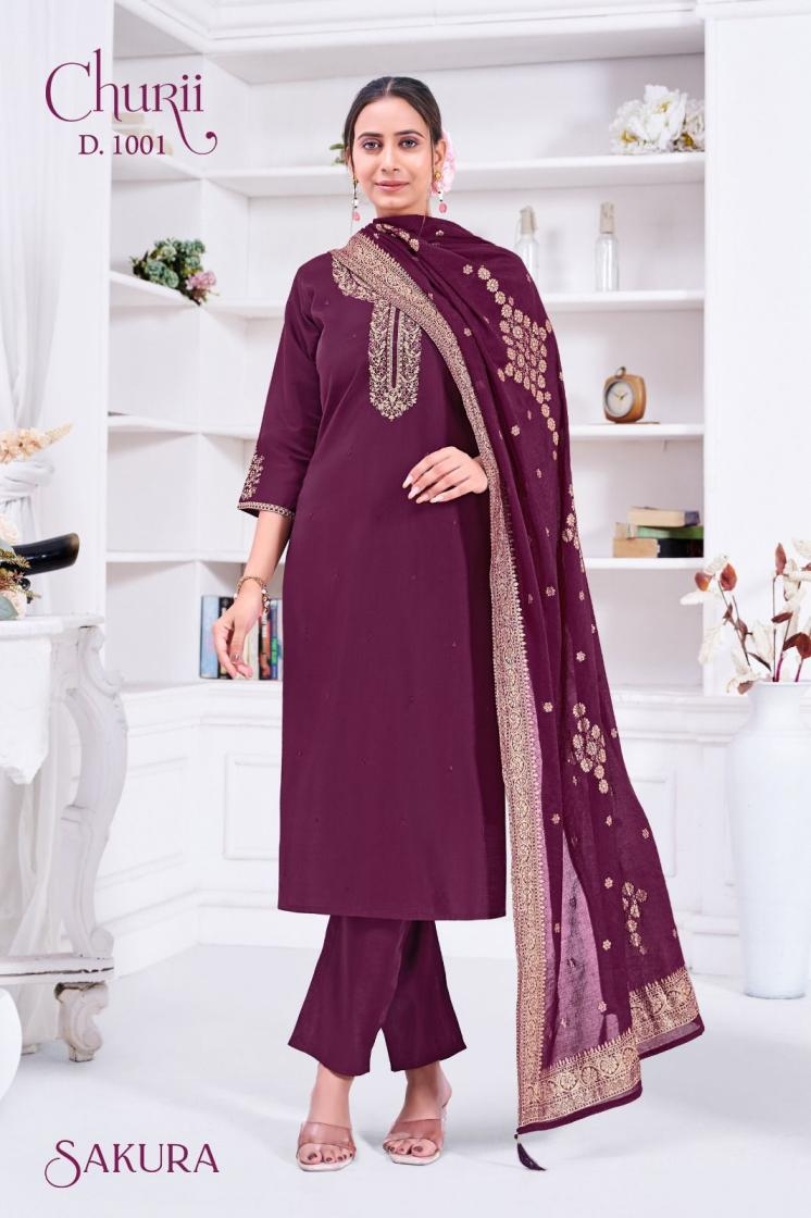 Name: | Churii Sakura Series 1001 To 1008 Viscose Roman Silk Fully Stitch Combo Set Suit In Wholesale Surat |