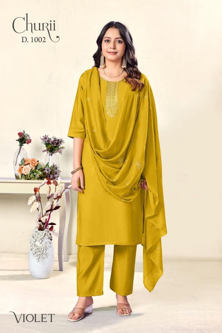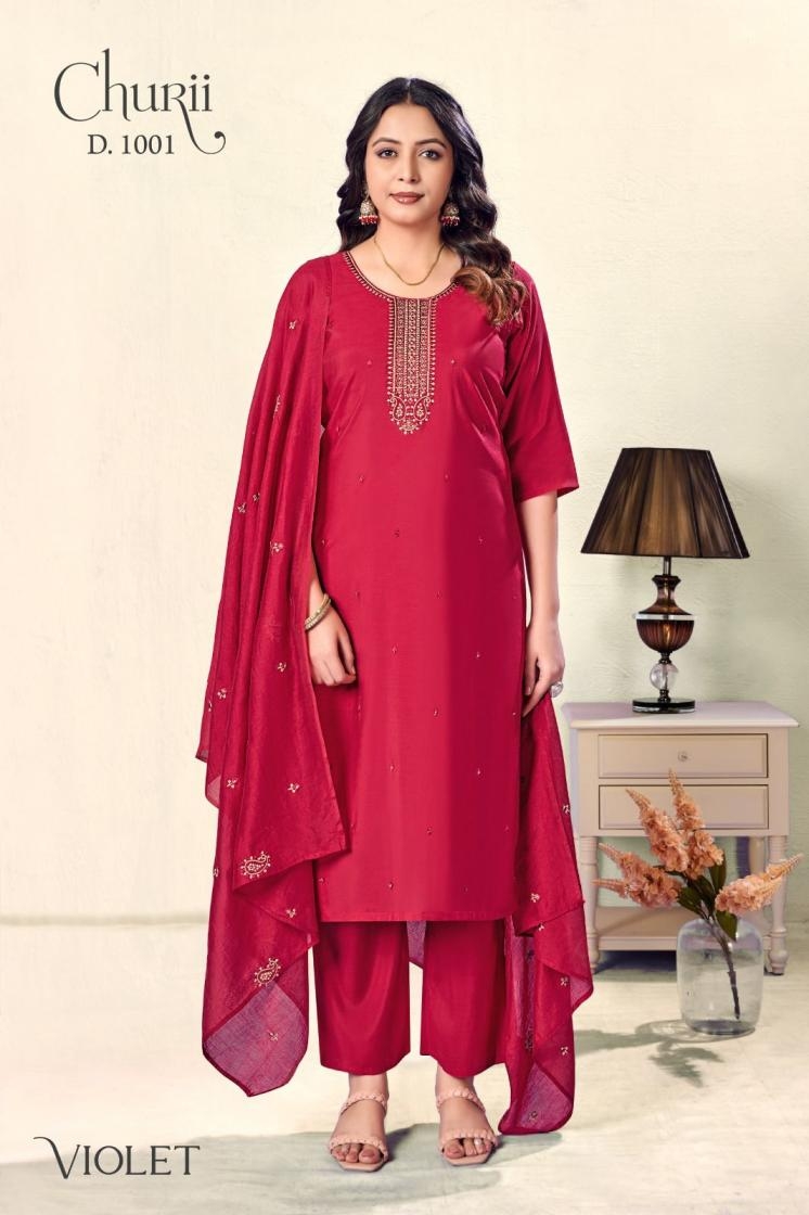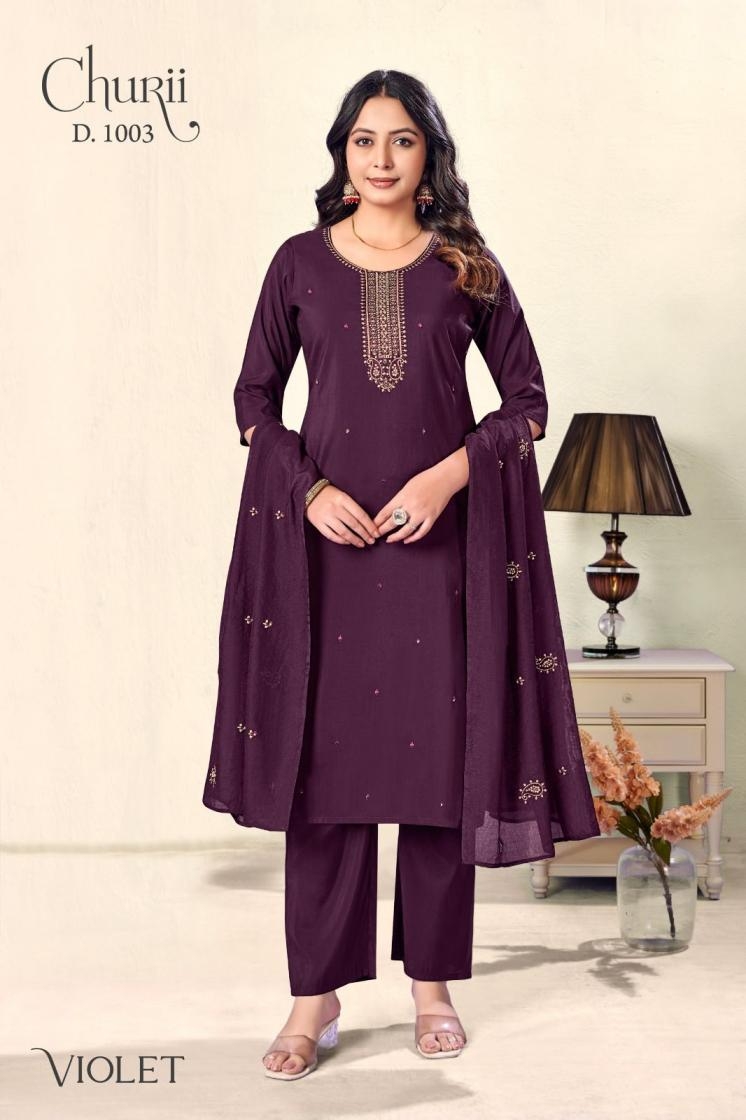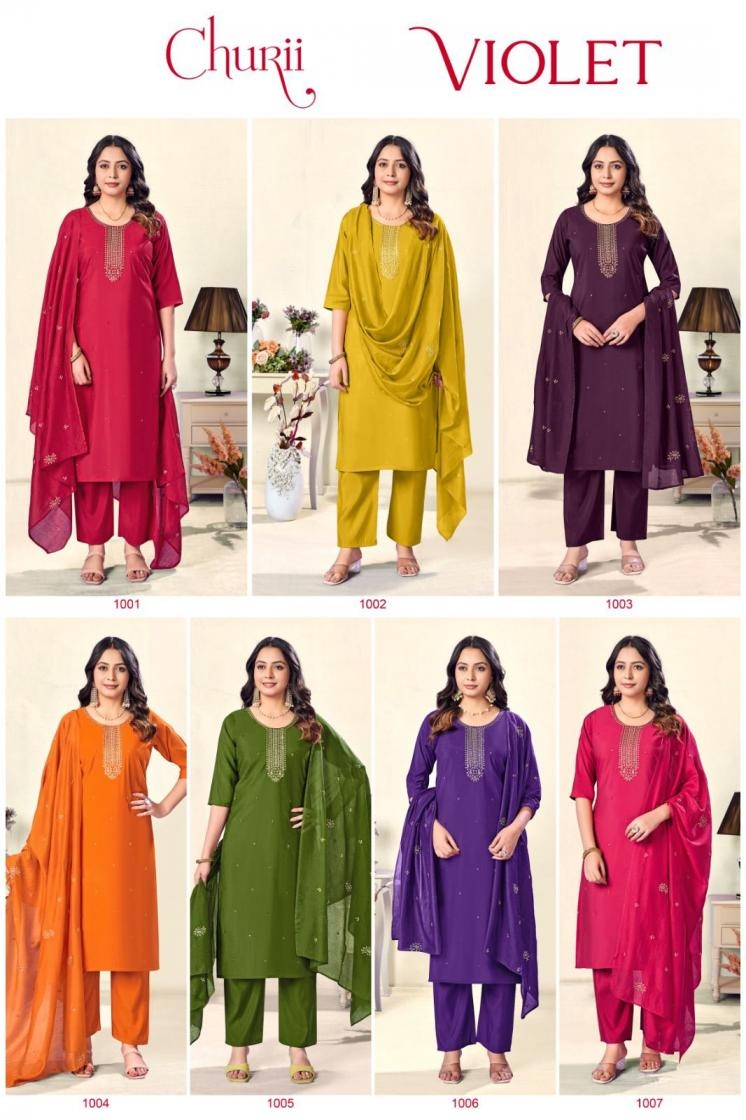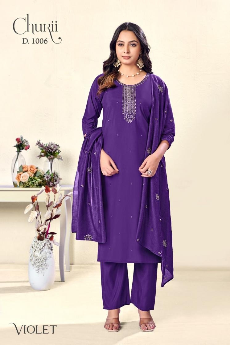 Name: | Churii Violet Series 1001 To 1007 Viscose Roman Silk Readymade Combo Salwar Kameez In Wholesale Surat |