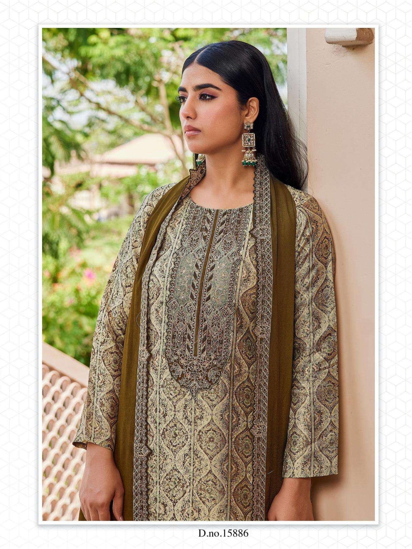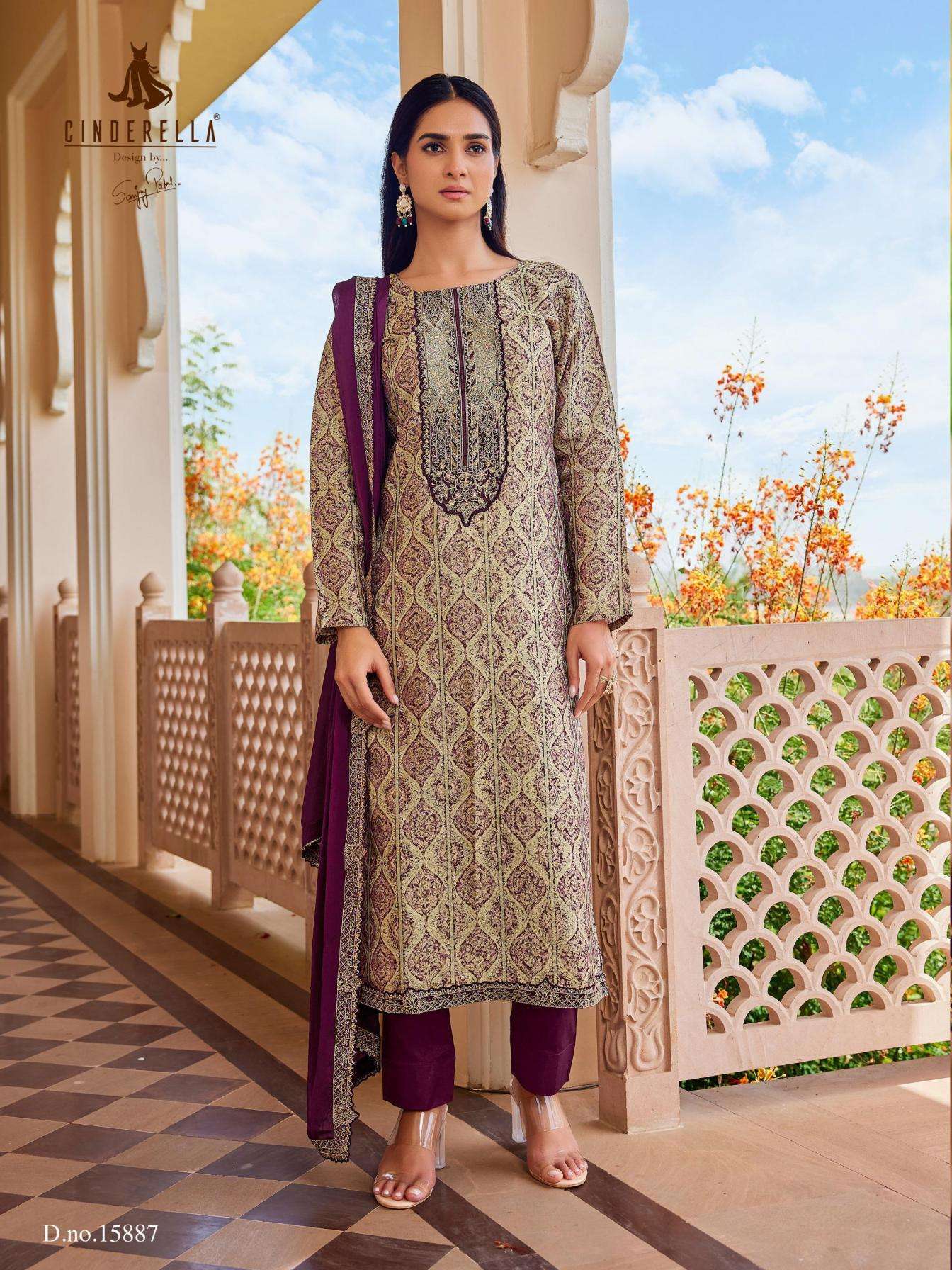 | Name: | Cindrella Saheli Series 15885-15888 Tanshvi Silk Jacquard Wholesale Suit | |