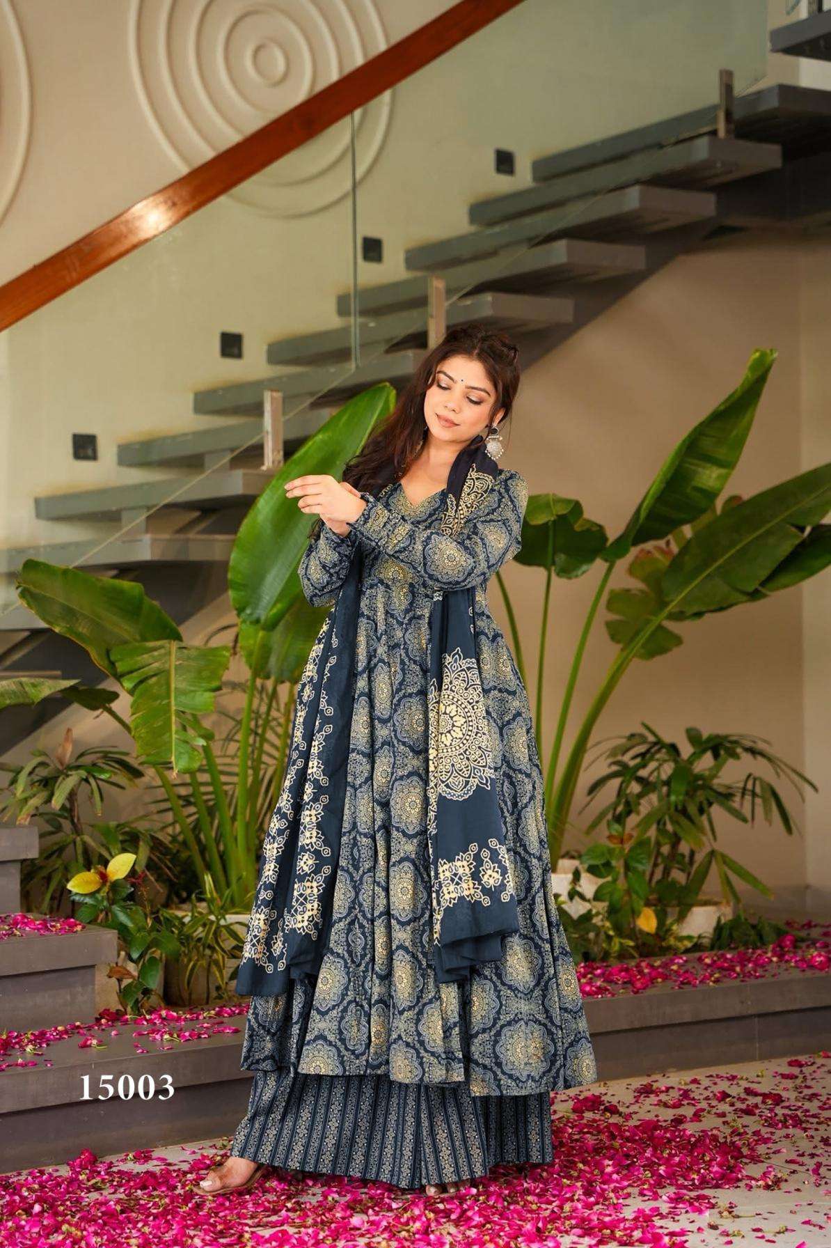 | Other Details: | Clora vol 15 Presents this Designer 3pcs beautiful printed Kurti ,bottom with dupatta Collection (set of 7 beautiful design 15001 to 15007) Product details Kurta fabric : - Maslin with heavy digital print Note:- sleeves fabric attached with sleeveless design ( design no -15004) Bottom fabric: – Muslin with heavy digital printed Dupatta fabric :- Muslin with heavy digital printed Dupatta length - 2.5 mtr approx Work :– Heavy Digital Printed Size :- XS(34),S(36),M(38),L(40),XL(42),XXL(44),3XL(46),4XL(48),5XL(50),6XL(52) Stitched type:- Full stitched Style :- Festival Wear, Function, Ceremonial, Wedding Wear, Party Wear Rate – 1299/- Disclaimer: Colour Of The Garment May Differ From The Picture By 10-12% |