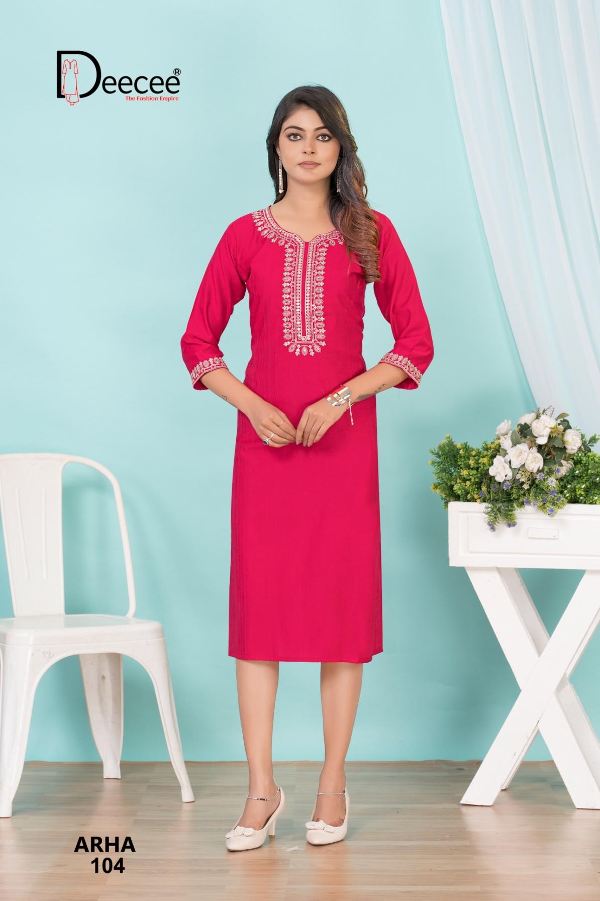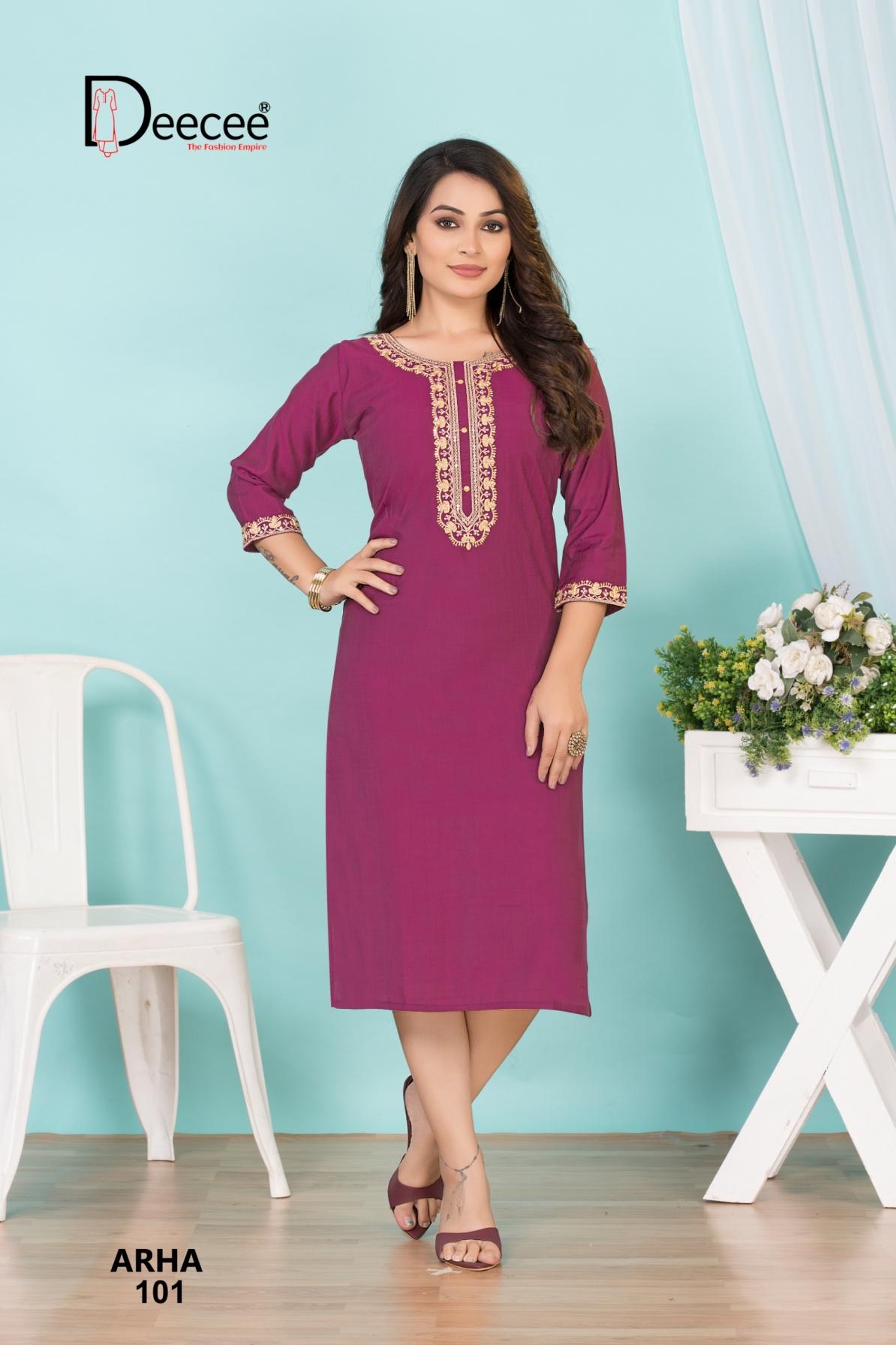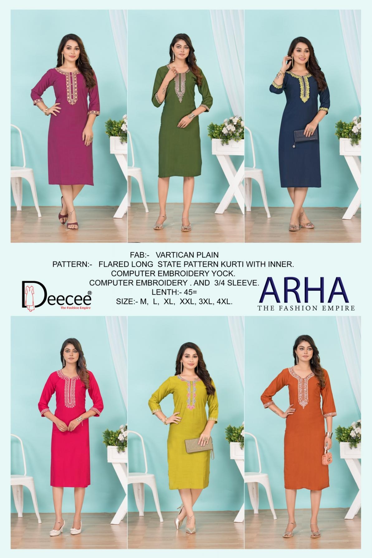 | Name: | Deecee Presents Arha Series 101 To 106 Vartican Plain Readymade Fancy Big Size Long Kurtis In Wholesale Surat |