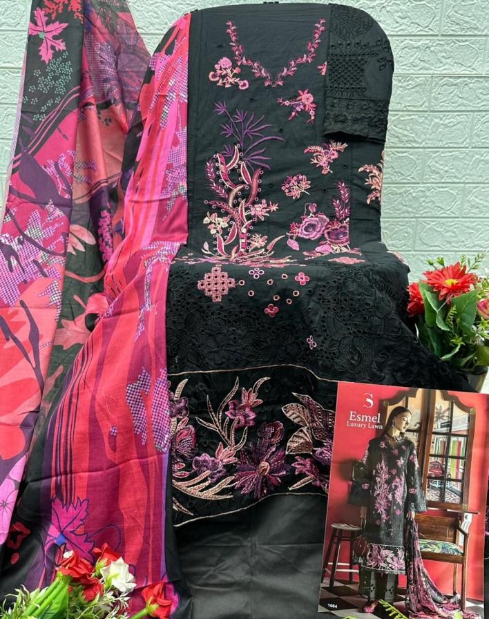 | Other Details: | ESMEL LUXURY LAWN by DEEPSY SUITS Top - Pure cotton with heavy self embroidery Bot - cotton solid Dup - Cotton digital print Pcs: 6 *Rate - 1199(Cotton dup ) Splendid Quality With Digitally Printed Fabric Quilted Fabric Used For best quality results |