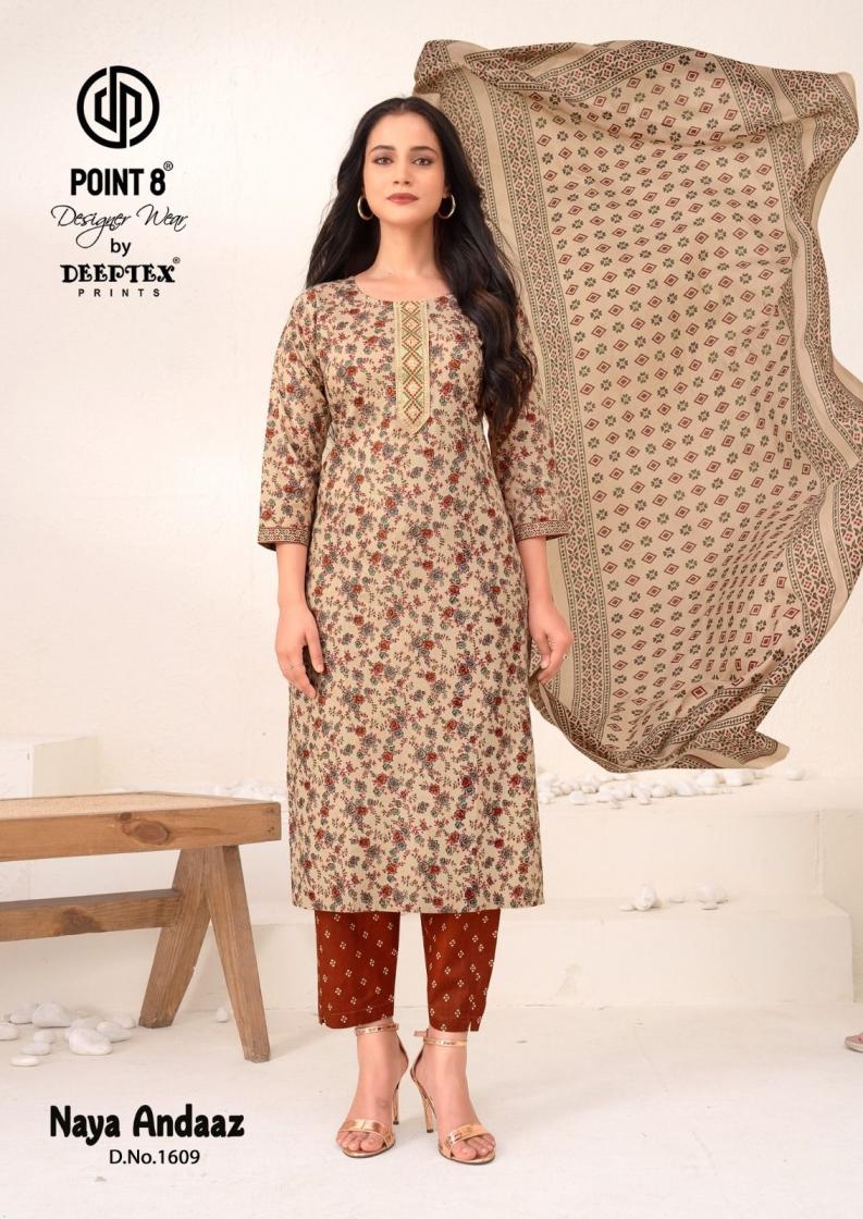 | Name: | Deeptex Point 8 Naya Andaaz Vol 16 Series 1601 To 1610 Cotton Fullstitch Big Size Suit In Wholesale Surat |