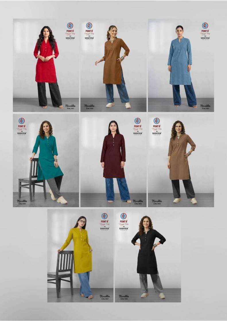 | Name: | Deeptex Point 8 Nivedita Vol 7 Series 7001-7008 Cotton Flex Wholesale Kurti | |