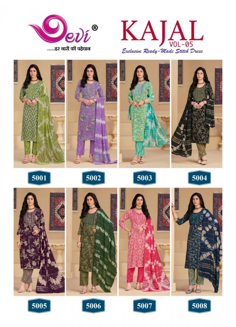 | Name: | Devi Kajal Vol 5 Series 5001 To 5008 Rayon Capsule Full Stitch Unique Salwar Kameez In Wholesale Surat |