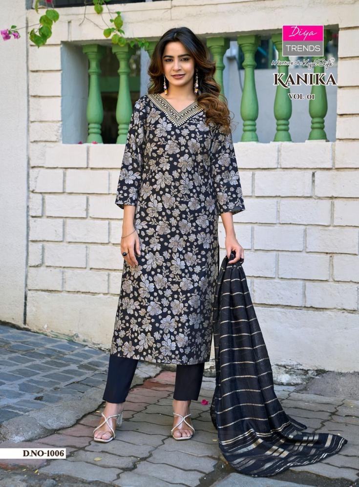 | Name: | Diya Trends Kanika Vol 1 Series 1001-1008 Vetican Readymade Suit |
