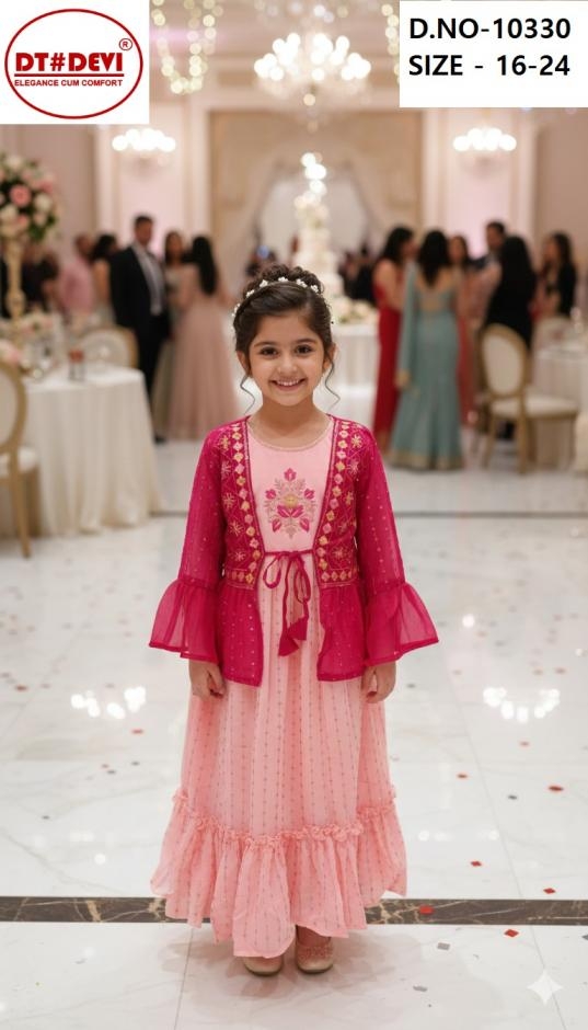 | Name: | Dt Devi 10330 Georgette Fully Stitch Combo Kids Gown With Coat In Wholesale Surat |