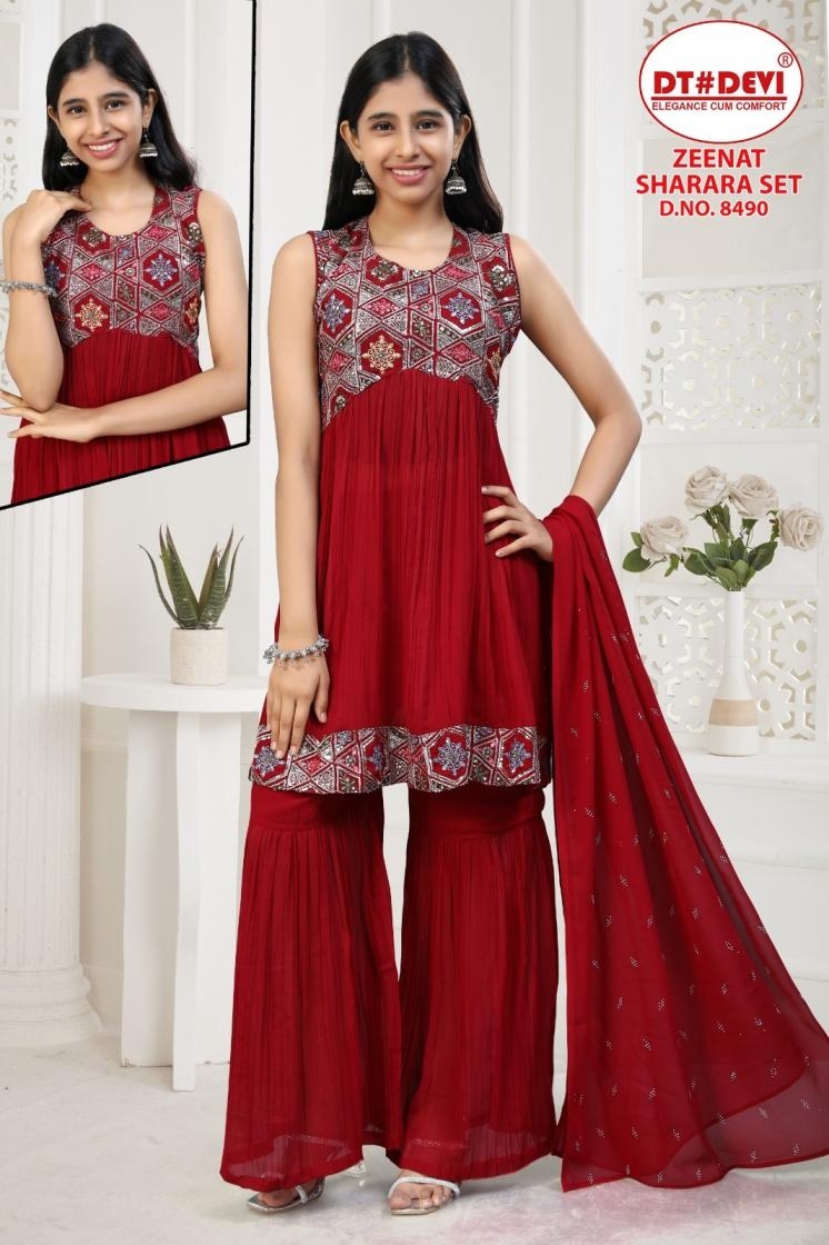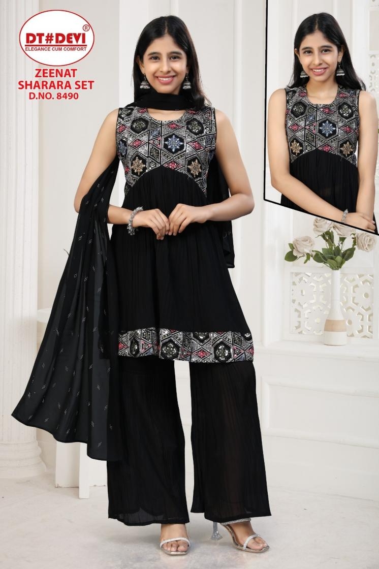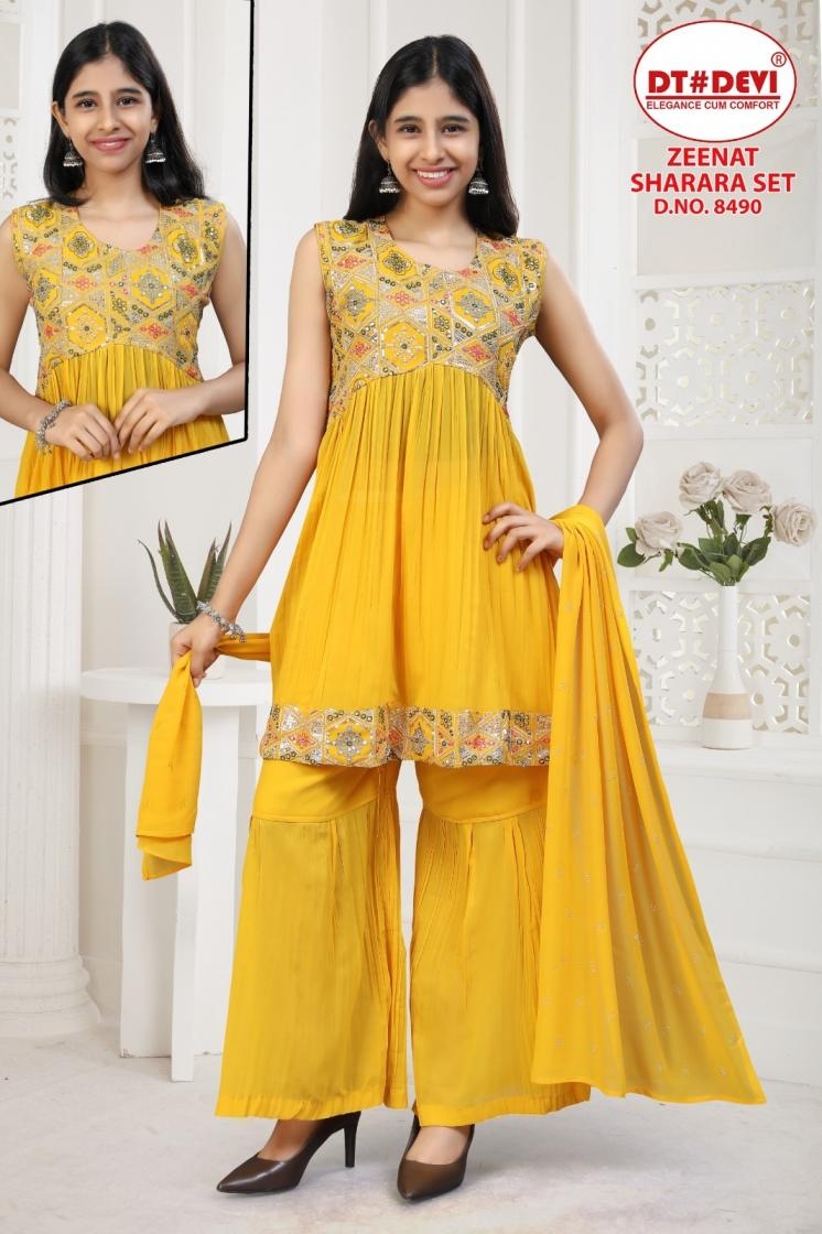 | Name: | Dt Devi Zeenat 8490 Georgette Readymade Combo Kids Sharara Kurti With Dupatta In Wholesale Surat |