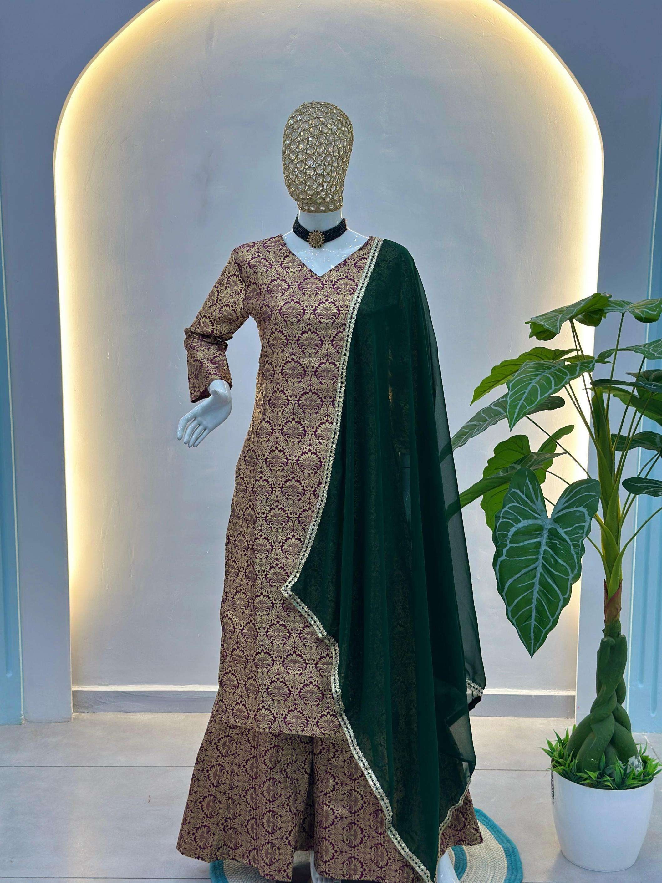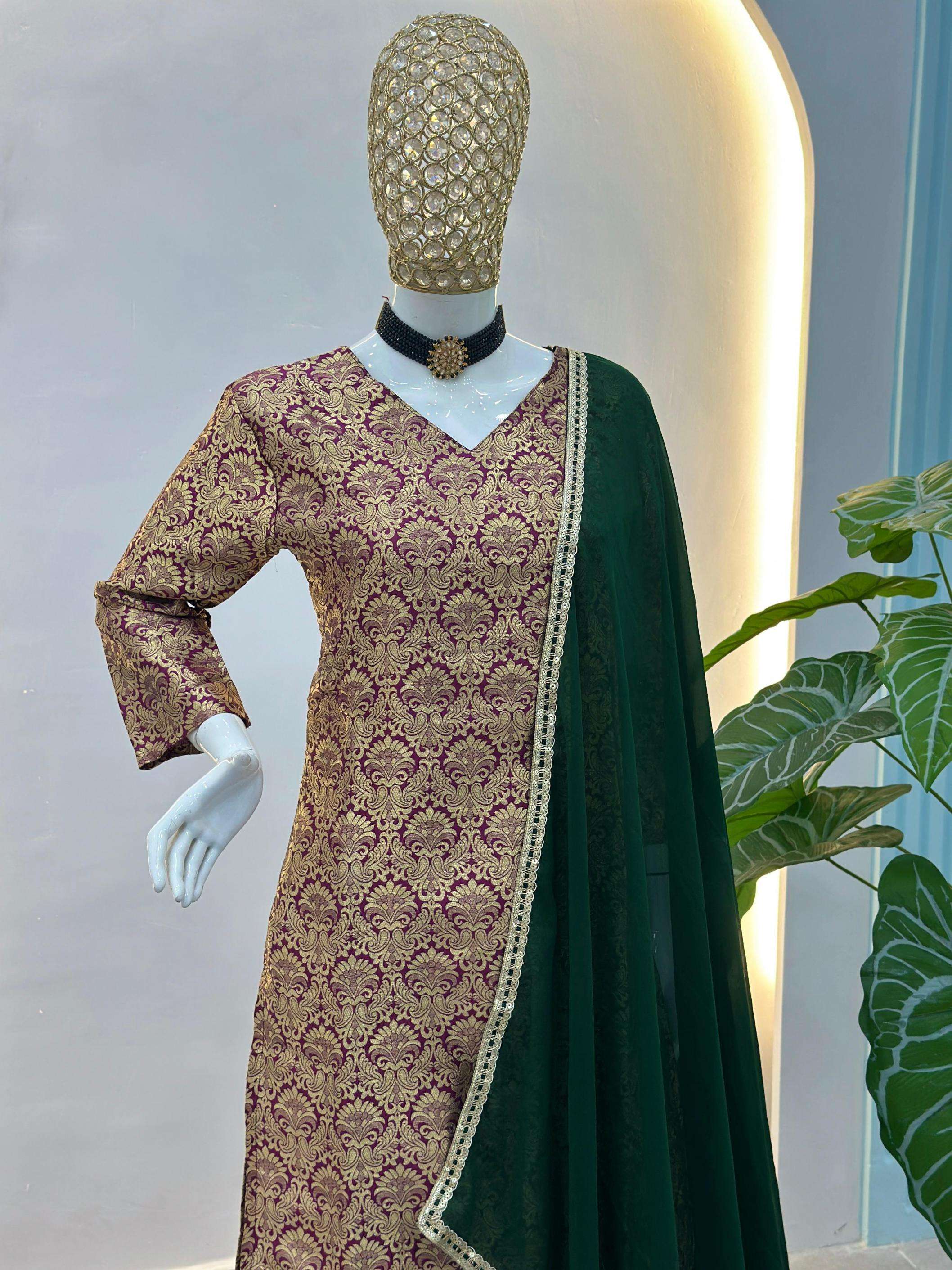 Timeless elegance in every thread. 🌸 Draping myself in the richness of Banarasi textures and emerald hues. Perfect for those special celebrations where tradition meets style.