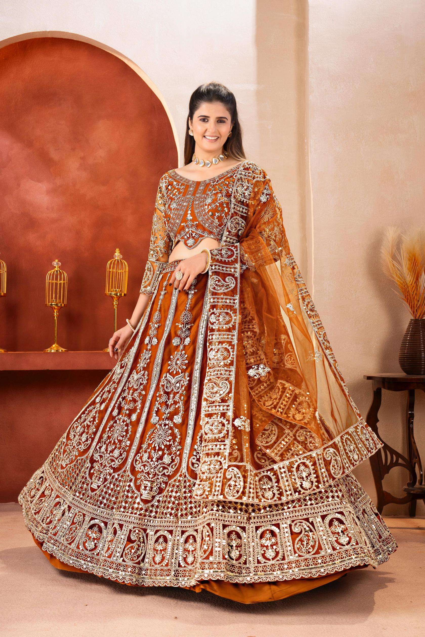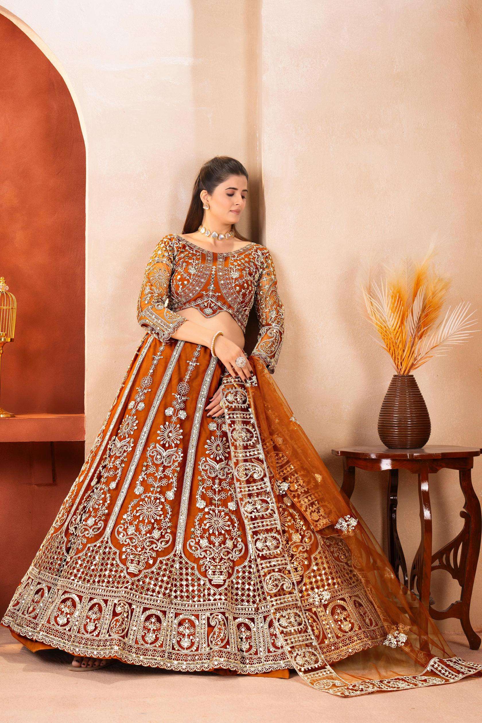 Intricate embroidery, rich hues, and timeless craftsmanship come together to create a lehenga that speaks luxury and grace. Perfect for weddings, receptions, and grand celebrations.