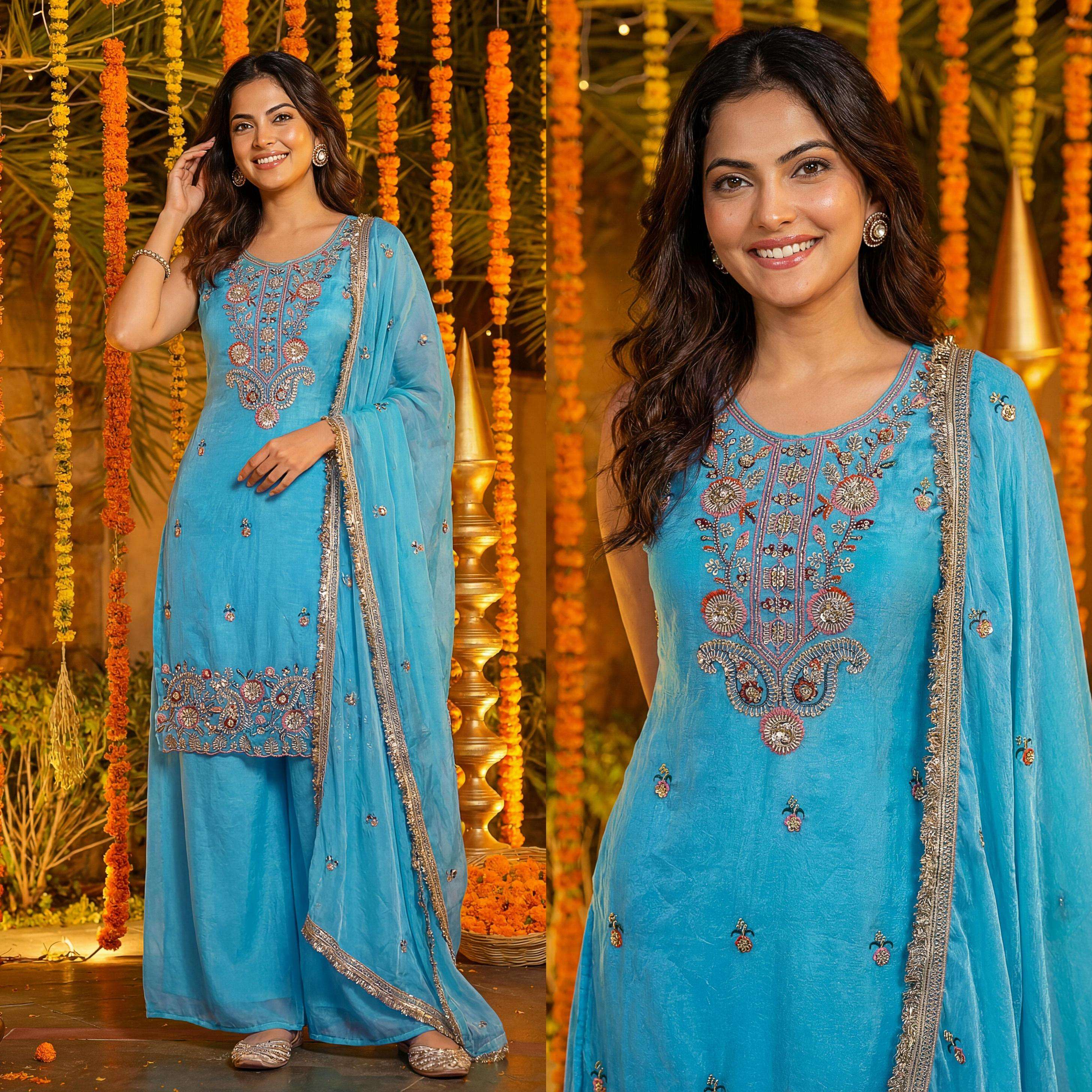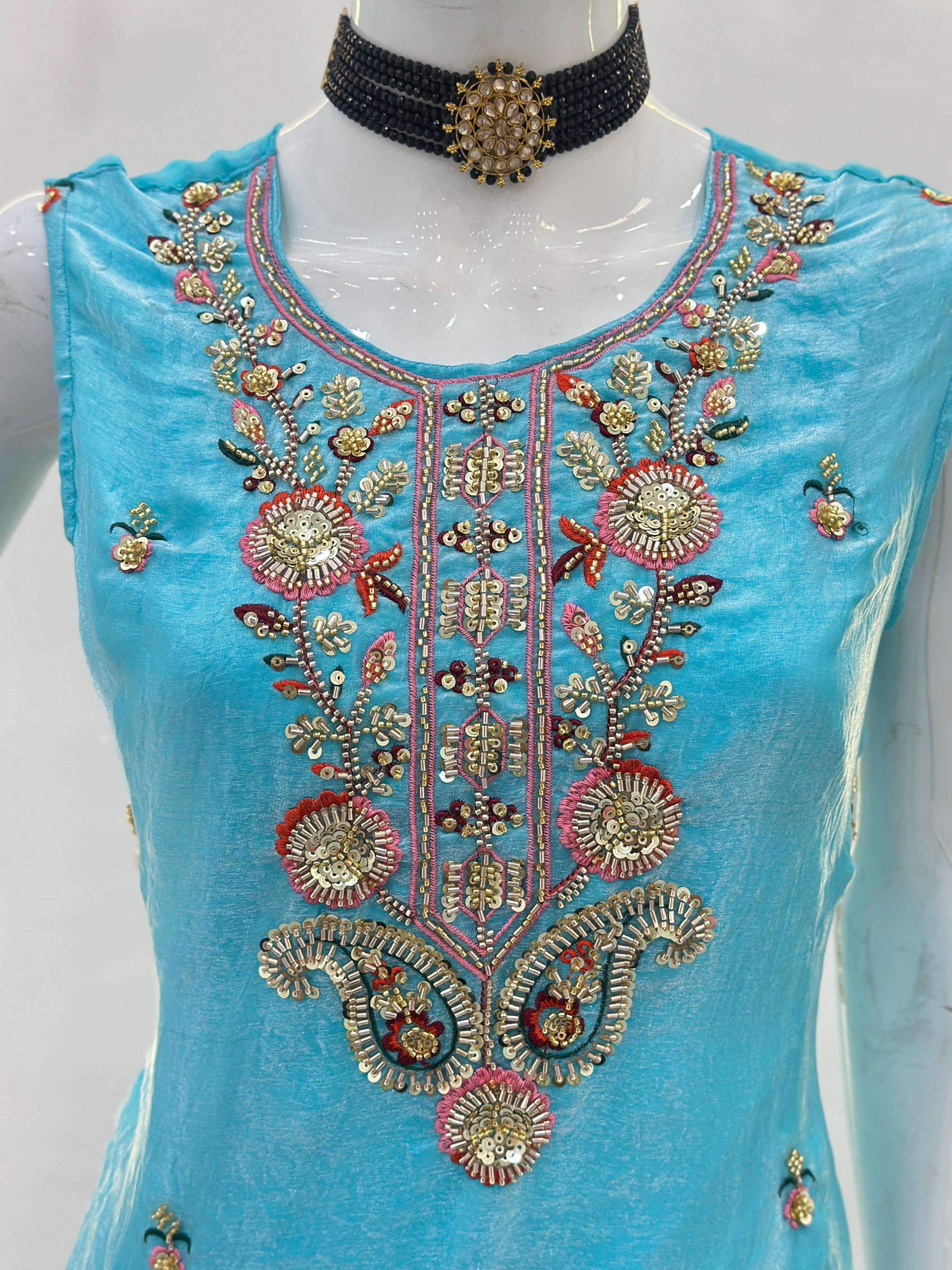 | Other Details: | 🌼Traditional handwork with a modern soul ✨ DVD ON 5166 Kurti (Stitched) Kurti Length : 40” Duppta Bottom (Full stitch) Weight :1Kg Price : 1595₹/- +GST |