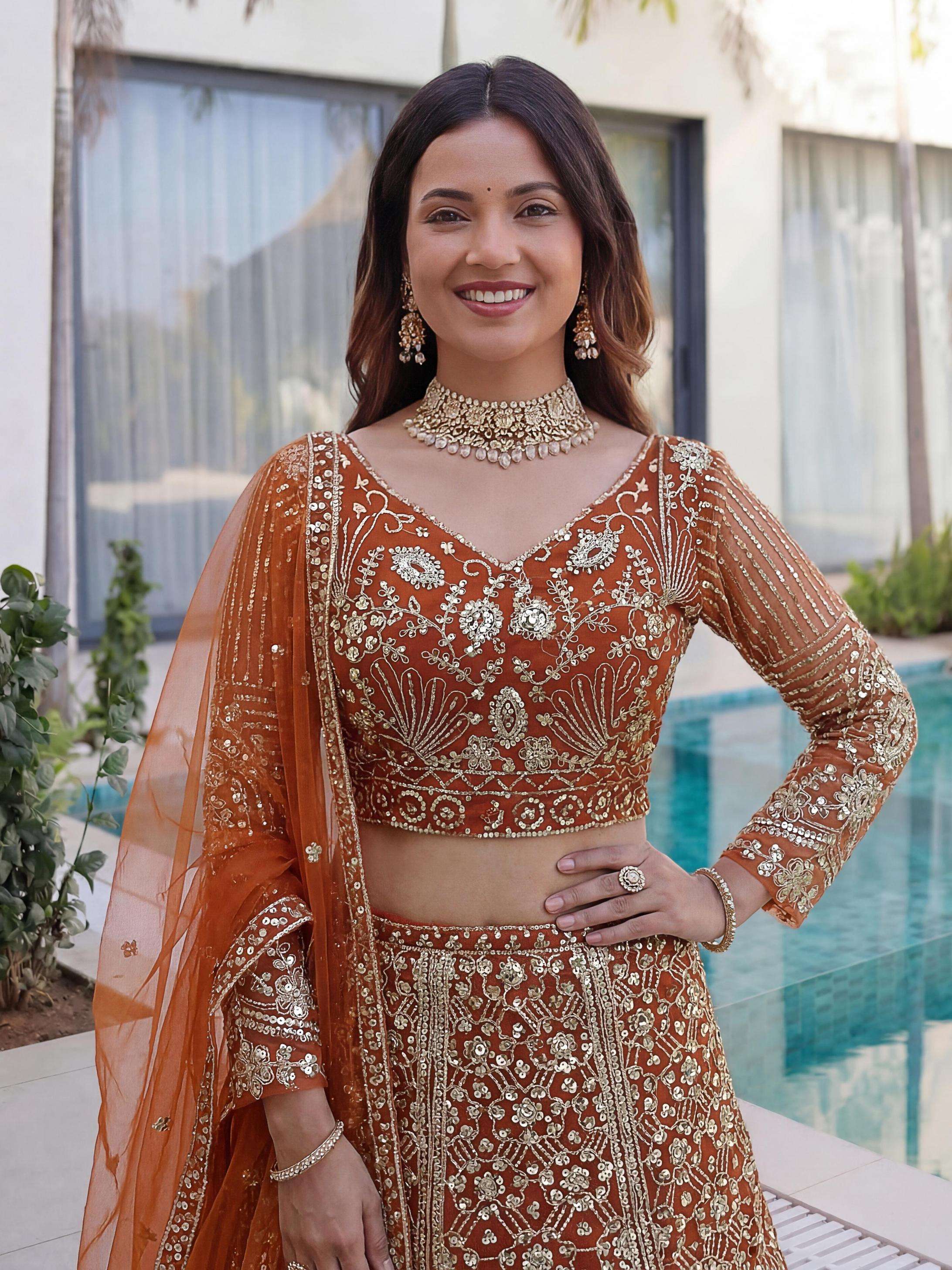 Intricate embroidery, rich hues, and timeless craftsmanship come together to create a lehenga that speaks luxury and grace. Perfect for weddings, receptions, and grand celebrations.