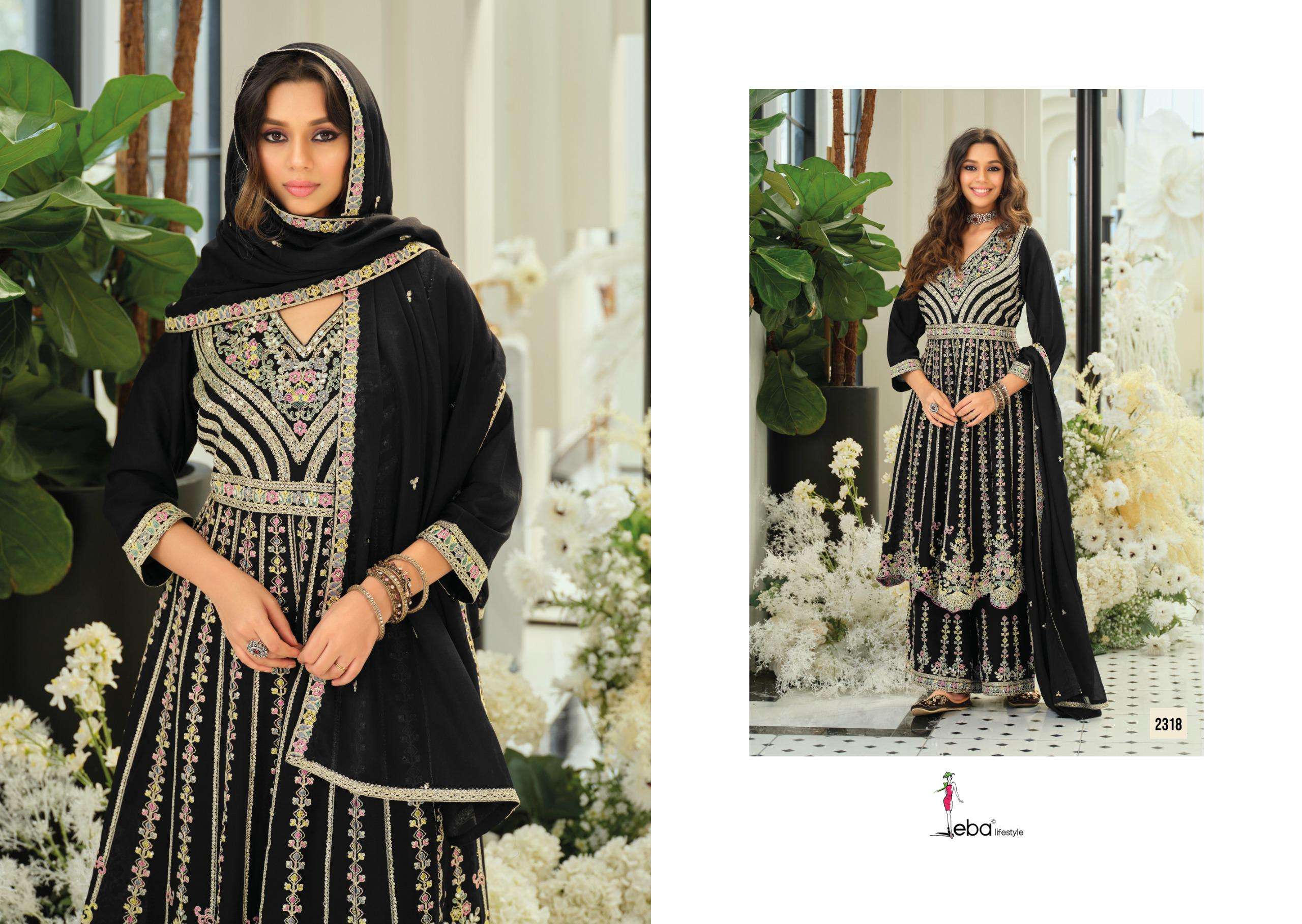 | Name: | Eba Barbie - 5 Black & White Hevey Chinon With Emboidery Work Wholesale Suit |
