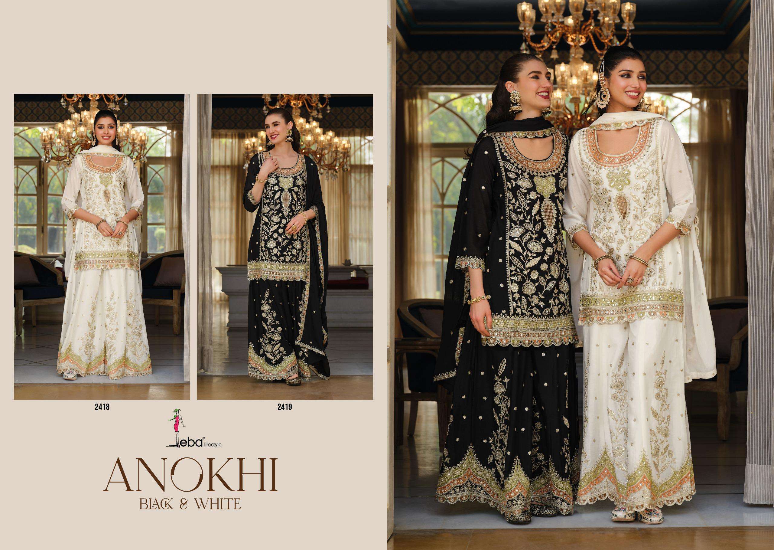 | Name: | Eba Lifestyle Anokhi Black & White Series 2418-2419 Chinon Readymade Suit |
