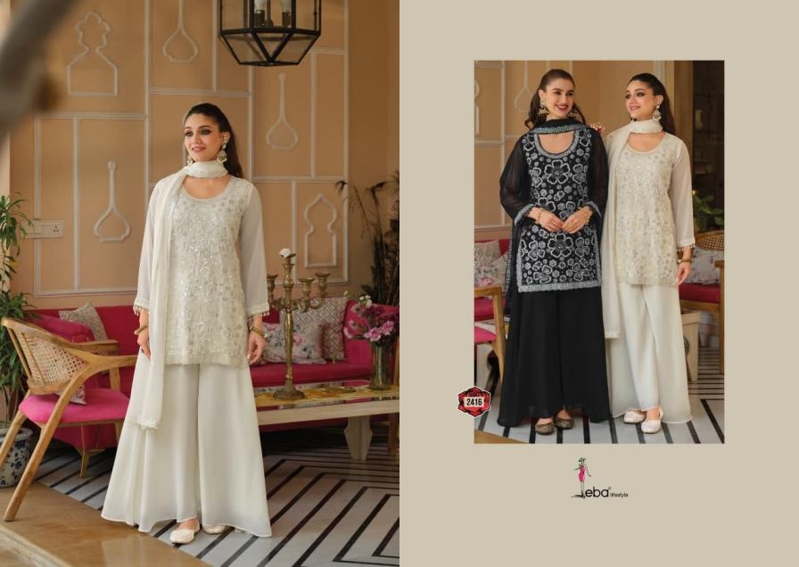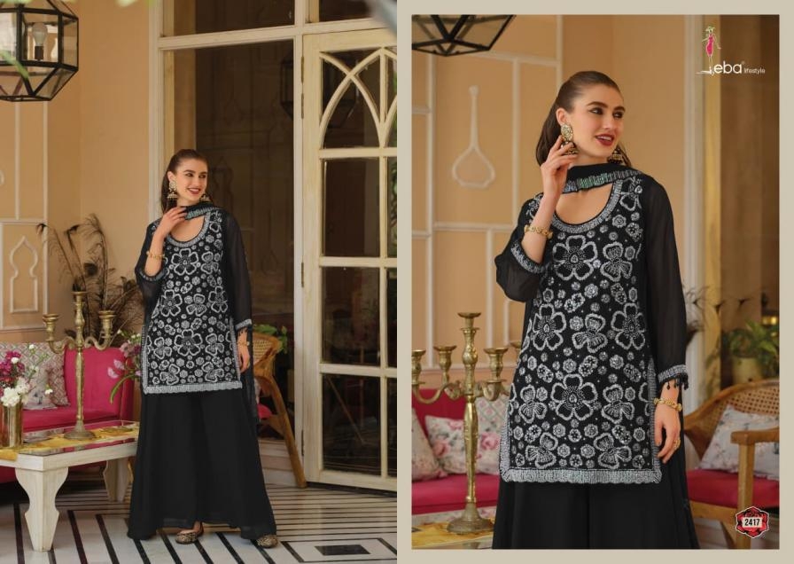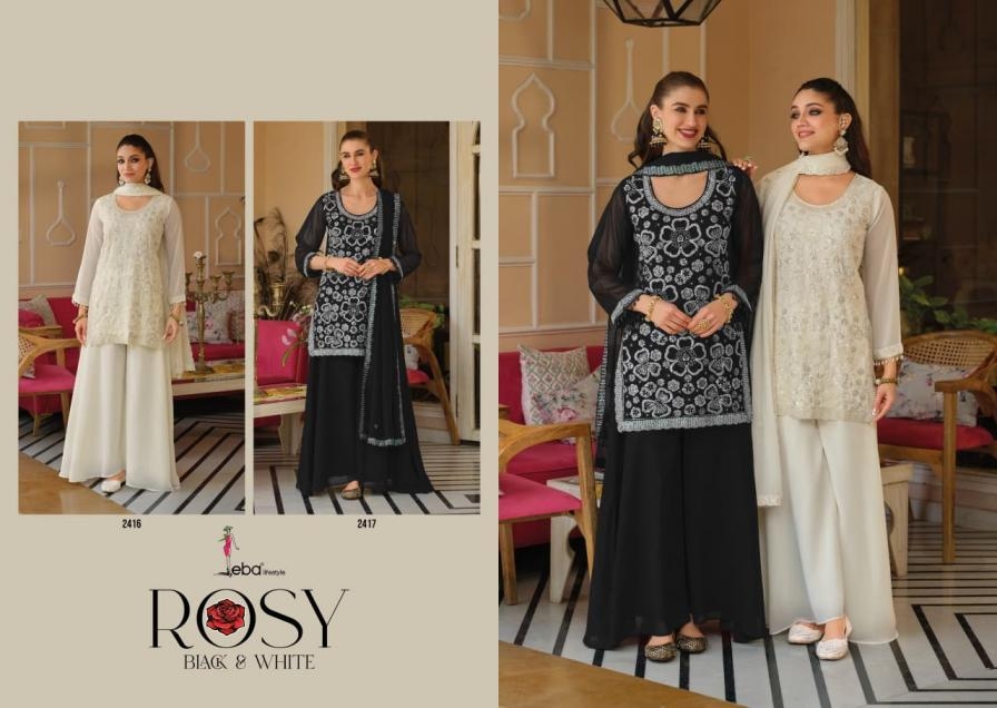 | Name: | Eba Lifestyle Rosy Black & White Series 2416-2417 Georgette Readymade Suit | |