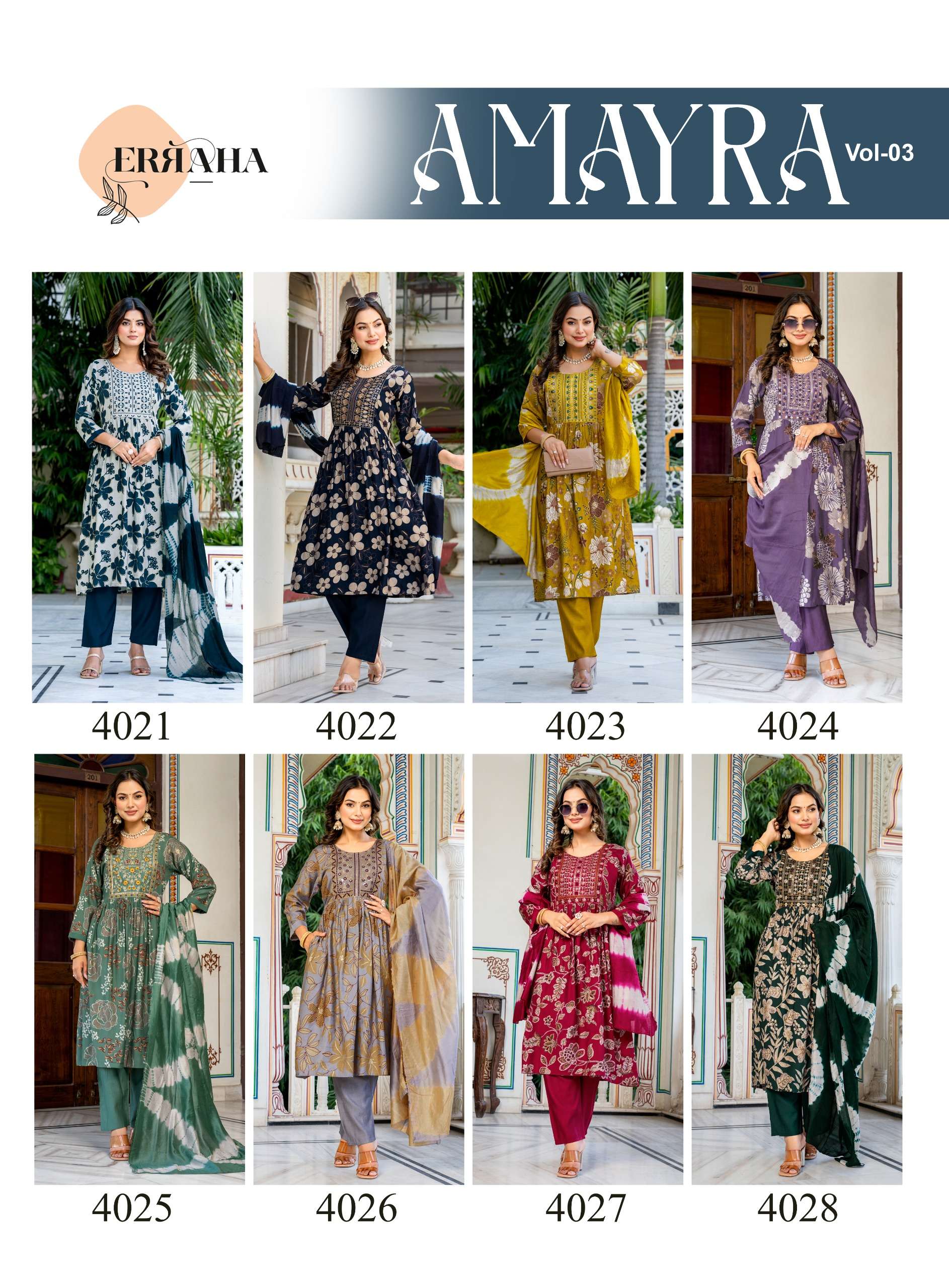 | Name: | Erraha Amayra Vol-3 Series 4021 To 4028 Heavy Vetican Printed With Foil Print And Embroidery Work Umbrella Style Kurti Pant With Dupatta In Wholesale Surat |