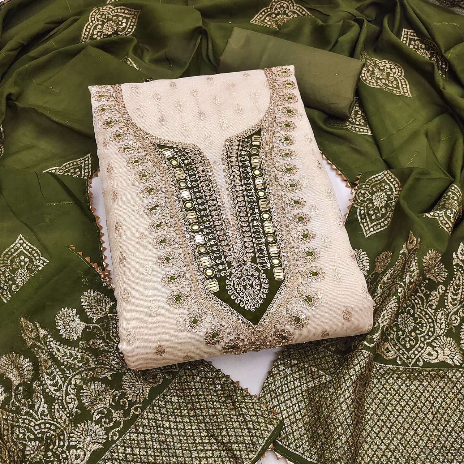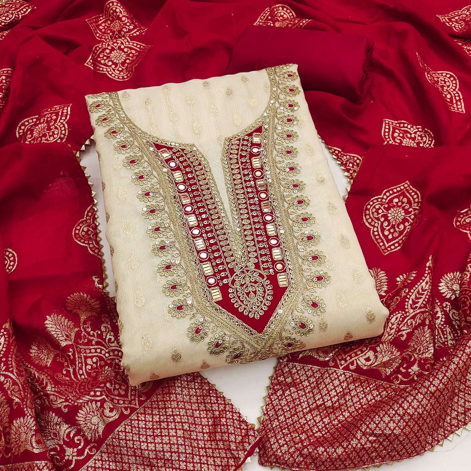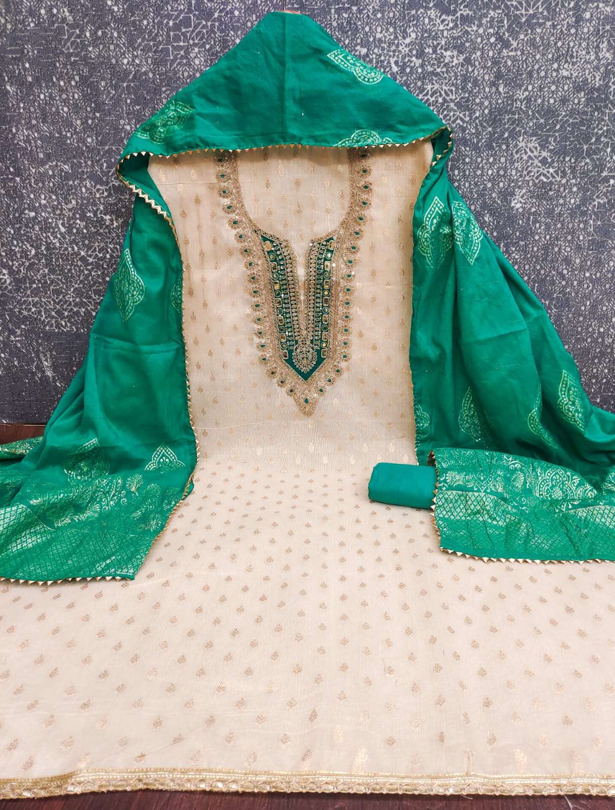 BOTTOM + INNER Fabrics:- Dupatta: CHANDERI SILK FANCY ZAKARD ▪ Size: MATERIALS