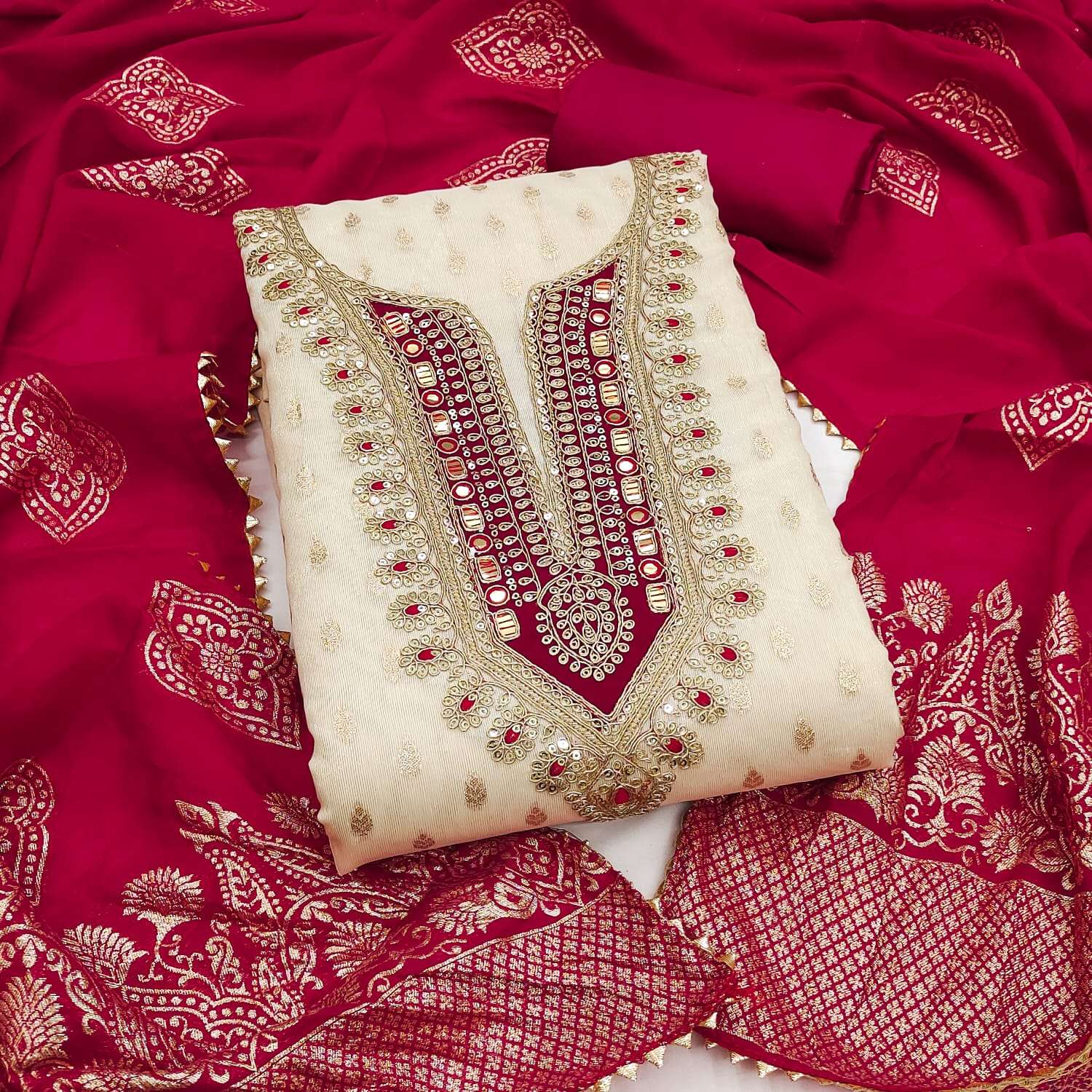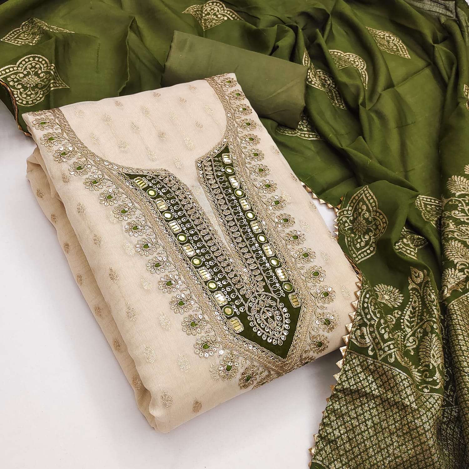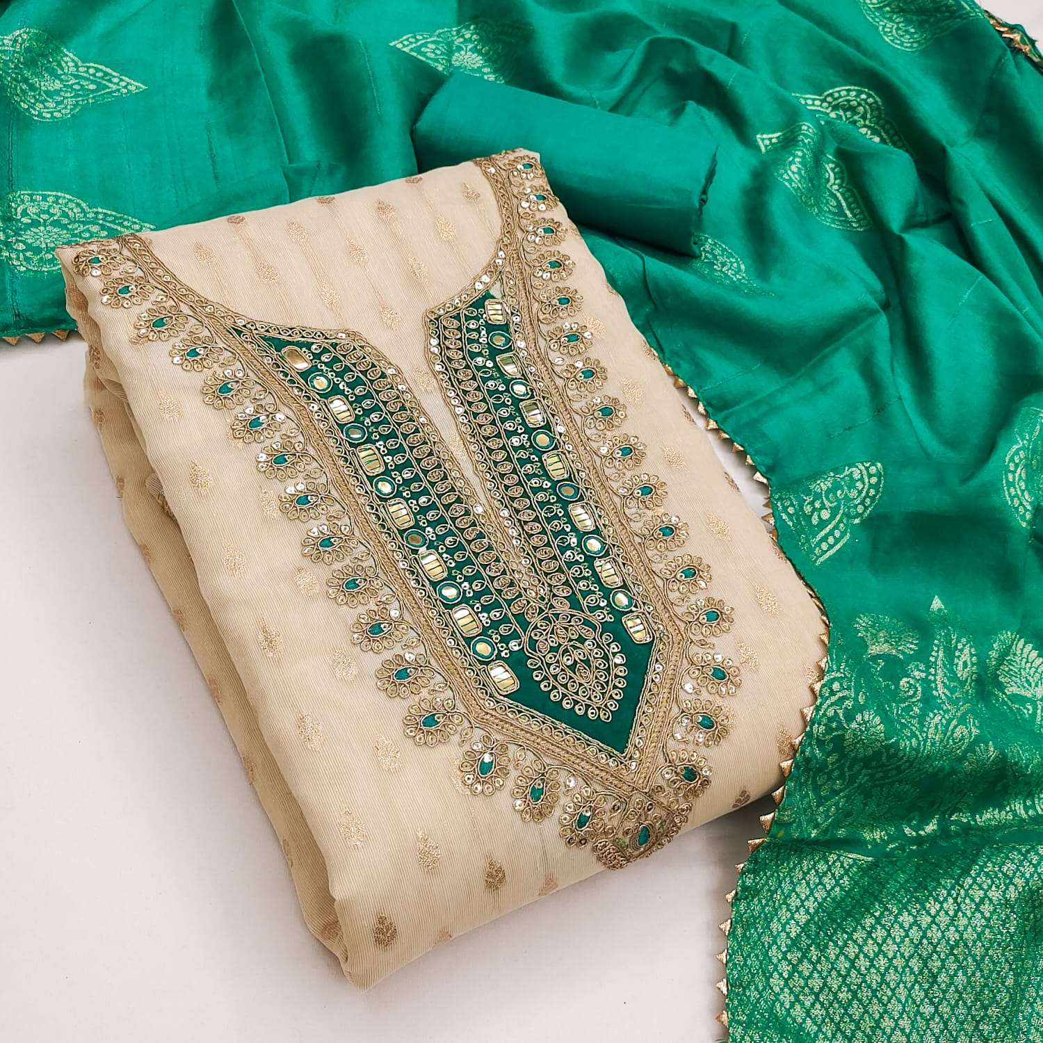 BOTTOM + INNER Fabrics:- Dupatta: CHANDERI SILK FANCY ZAKARD ▪ Size: MATERIALS