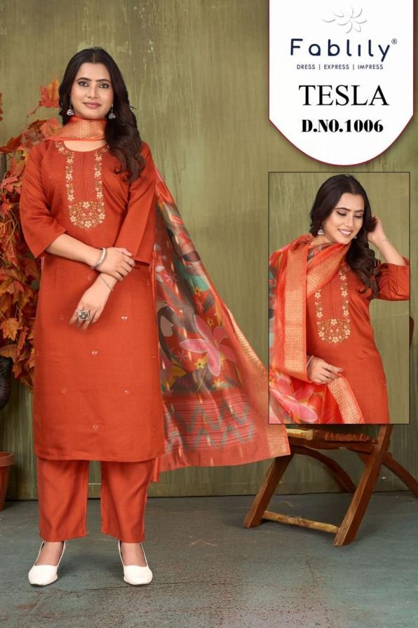 | Name: | Fablily Tesla Series 1001 To 1006 Berline Silk Fully Stitch Womens Indian Salwar Kameez Set In Wholesale Surat |