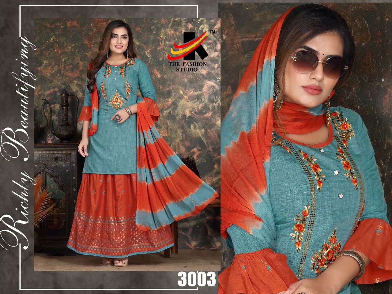 Name: | Fashion Studio Nafisa Vol-4 Series 3001-3008 Heavy Rayon Readymade Suit | |