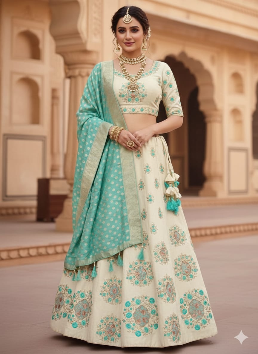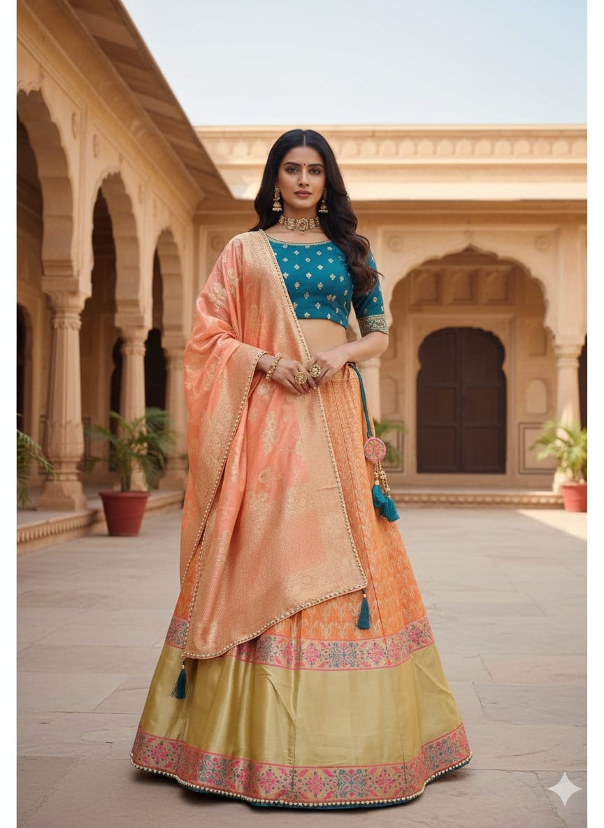 | Name: | Festival Mix Silk With Zari Weaving Fabric Designer Work Lehenga |
