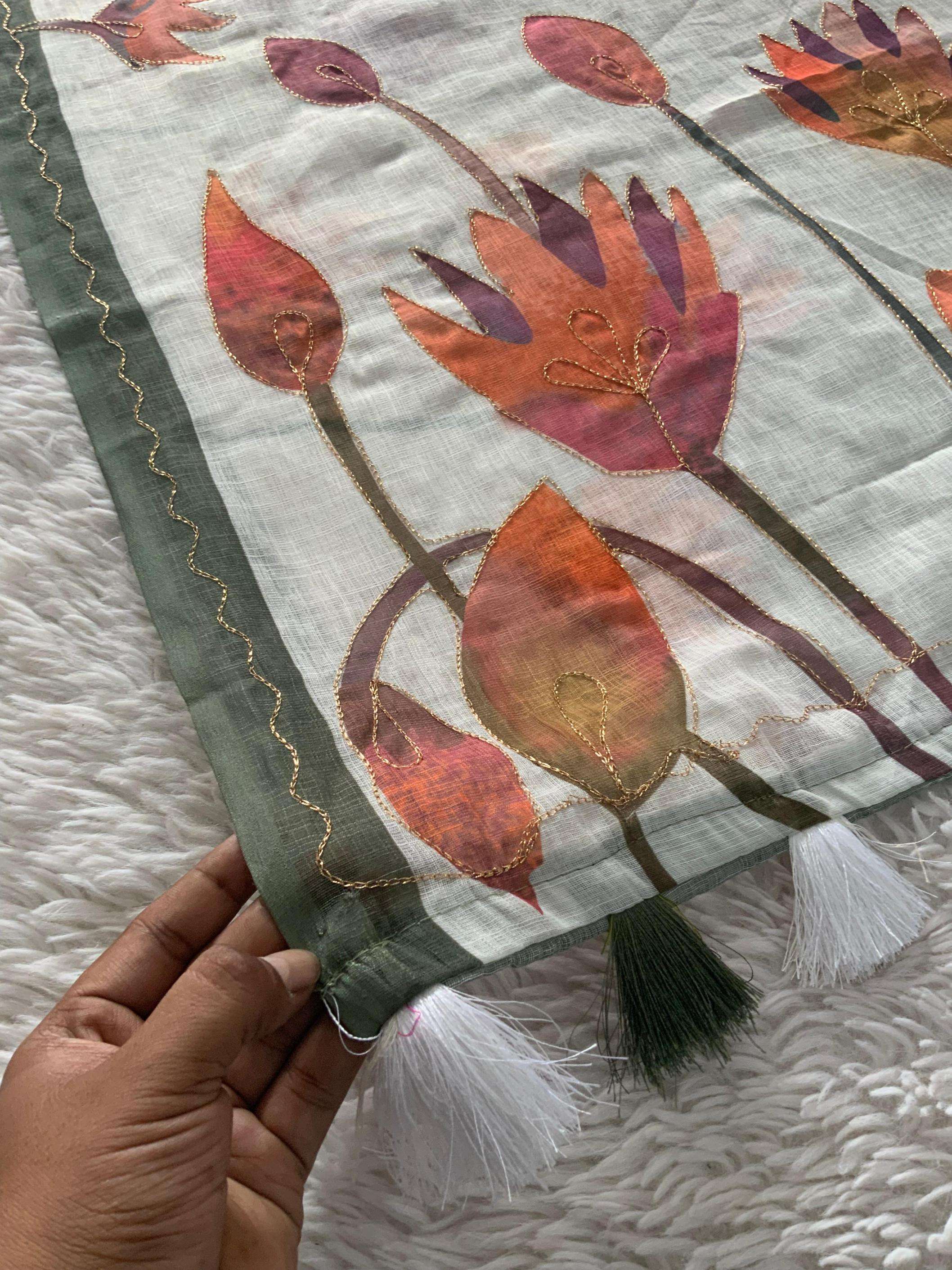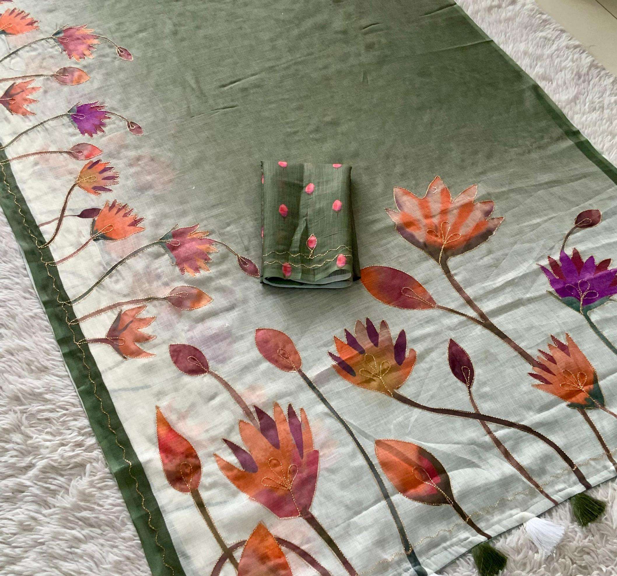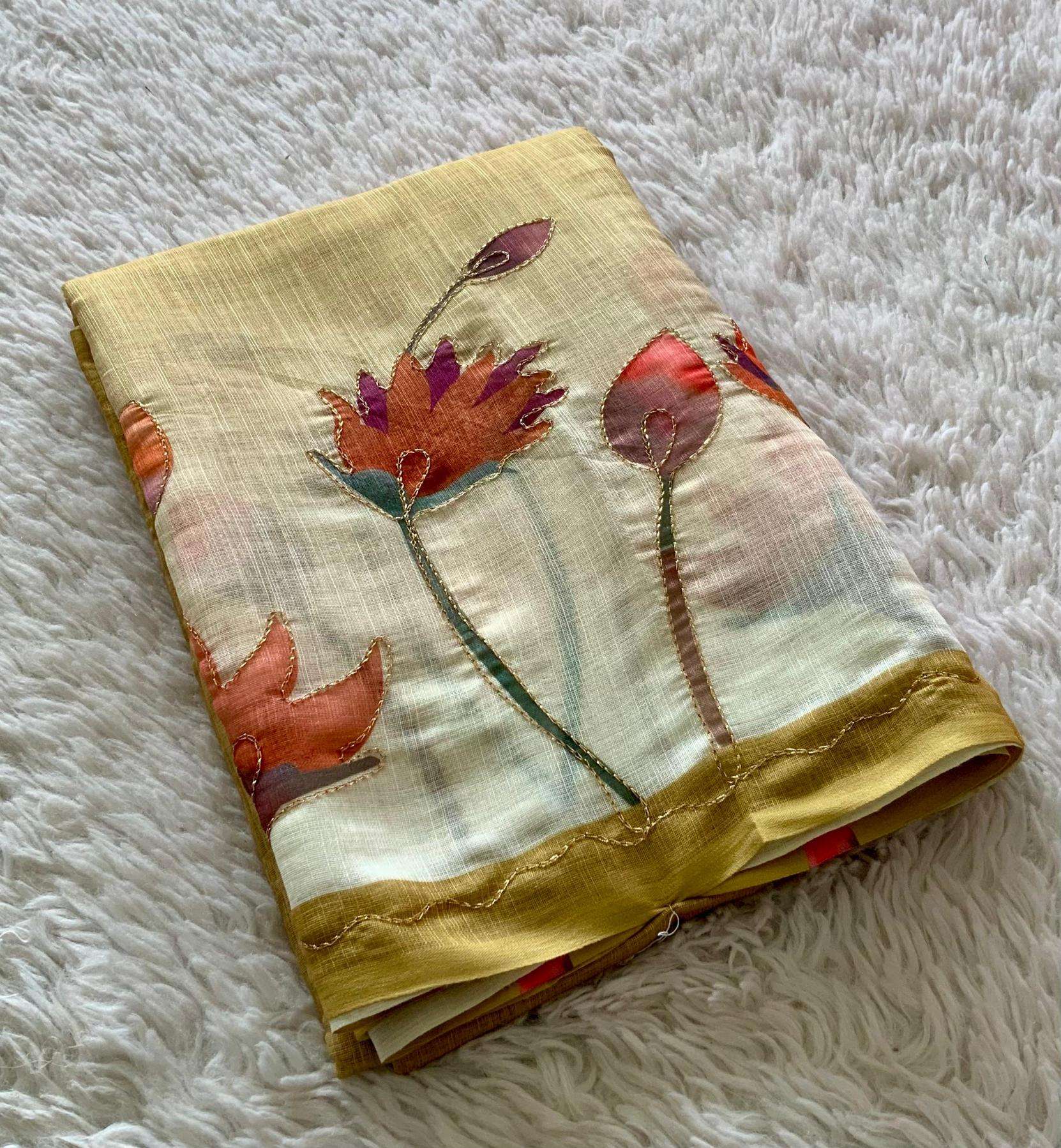 | Name: | Floral Aari Soft Linen Cotton Unique Colours Sarees In Wholesale Surat |