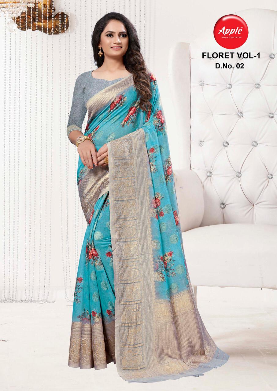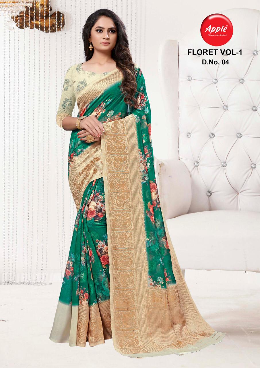 | Other Details: | Catalog Name : Floret by Apple Fabric : Soft cotton (Digital Print with Weaving Border) Designs : 8 Rate : 895/- Set to set. GST 5 Percent Extra. Delivery from tomorrow ?Exclusive Sarees Range for Wedding Season, Book Your Order Fast Hurry Up |