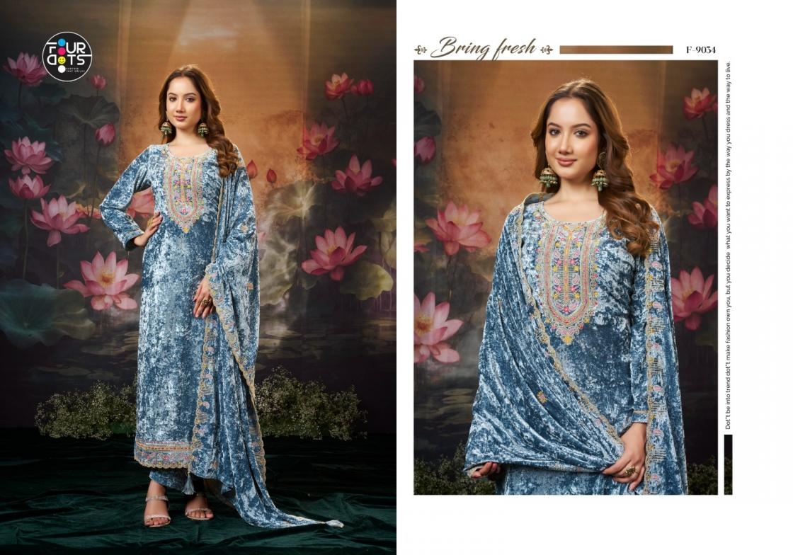 | Name: | Fourdots Panchmukh Series 9031 To 9034 Makhamal Velvet Winter Special Suit In Wholesale Surat |