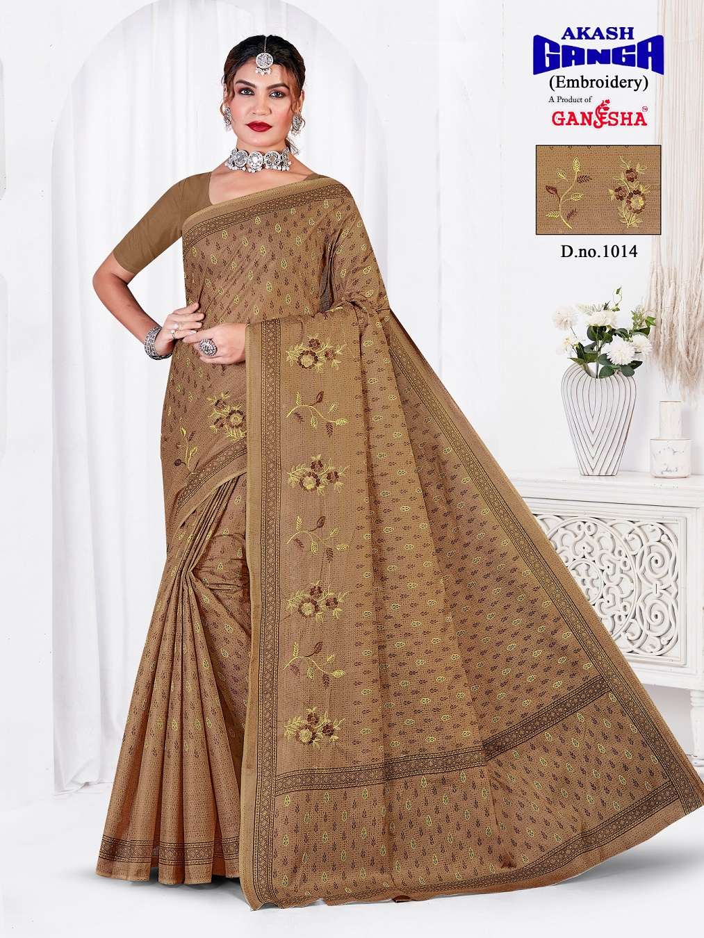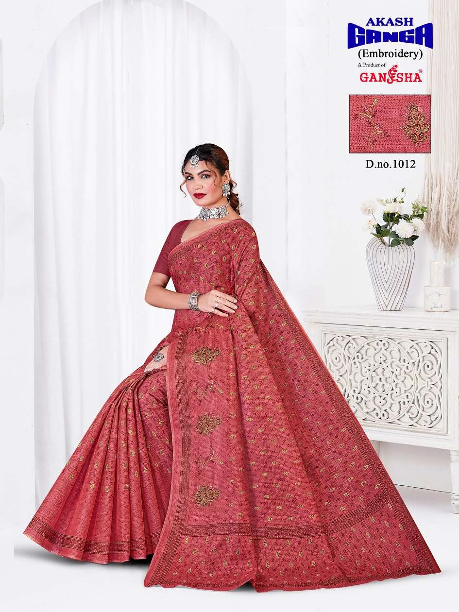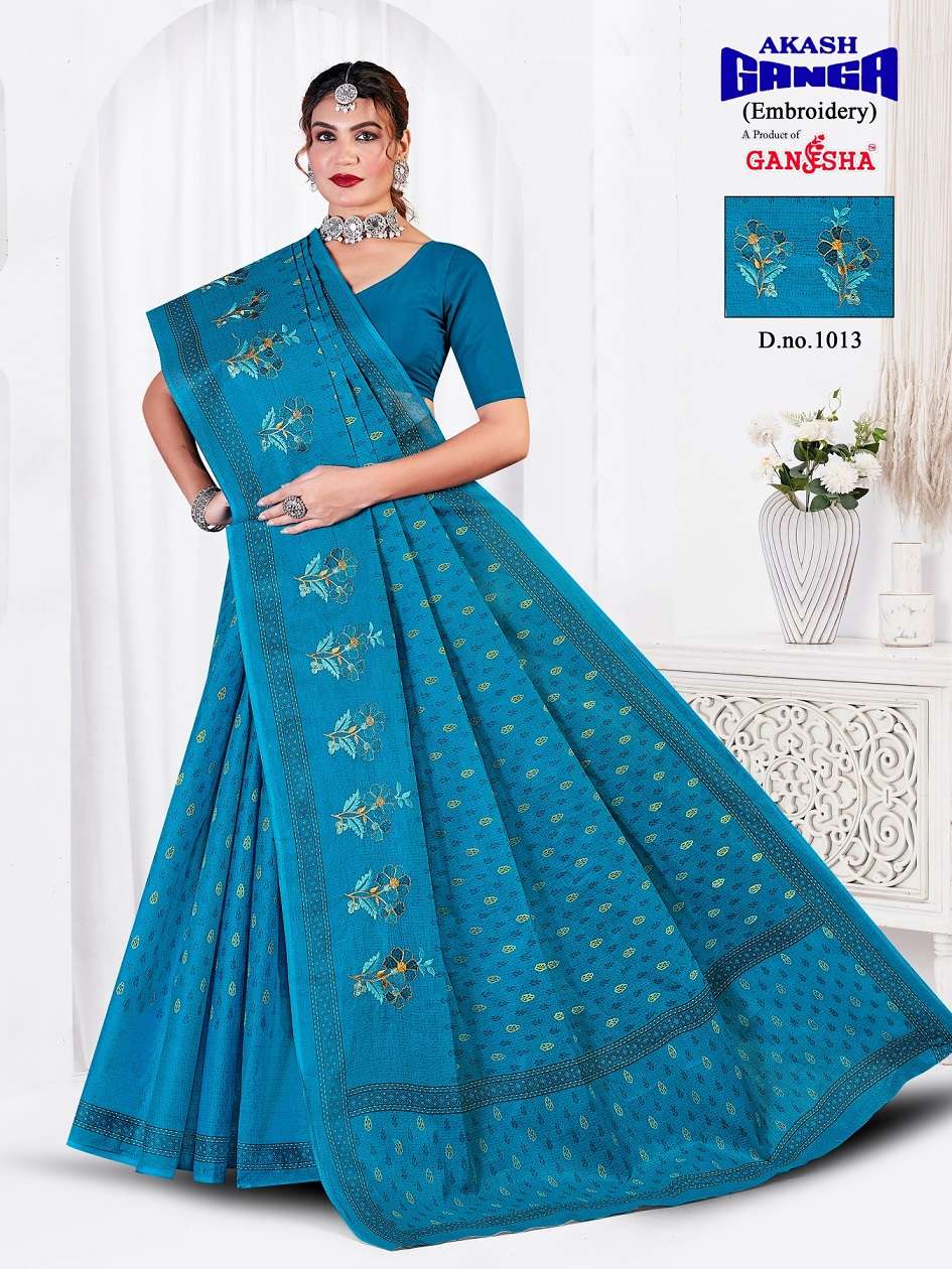 Name: | Ganesha Akash Ganga Series 1008 To 1017 Pure Cotton With Embroidery Work Cotton Saree In Wholesale Surat |