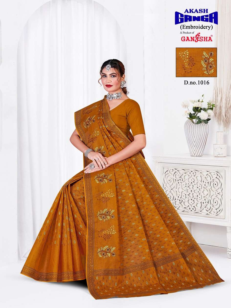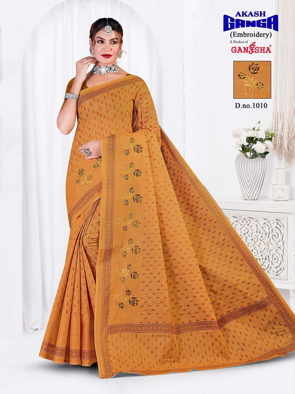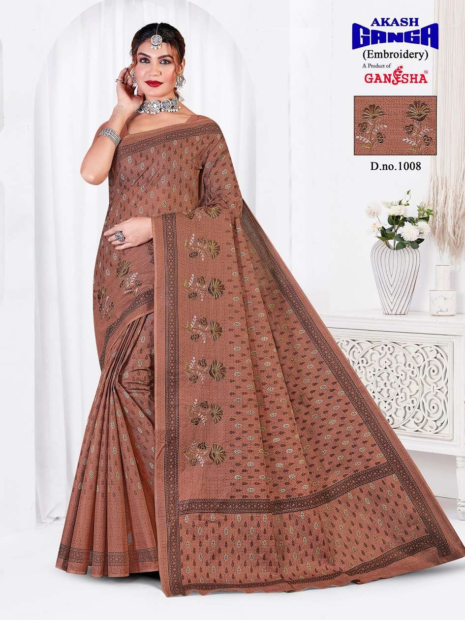 Name: | Ganesha Akash Ganga Series 1008 To 1017 Pure Cotton With Embroidery Work Cotton Saree In Wholesale Surat |