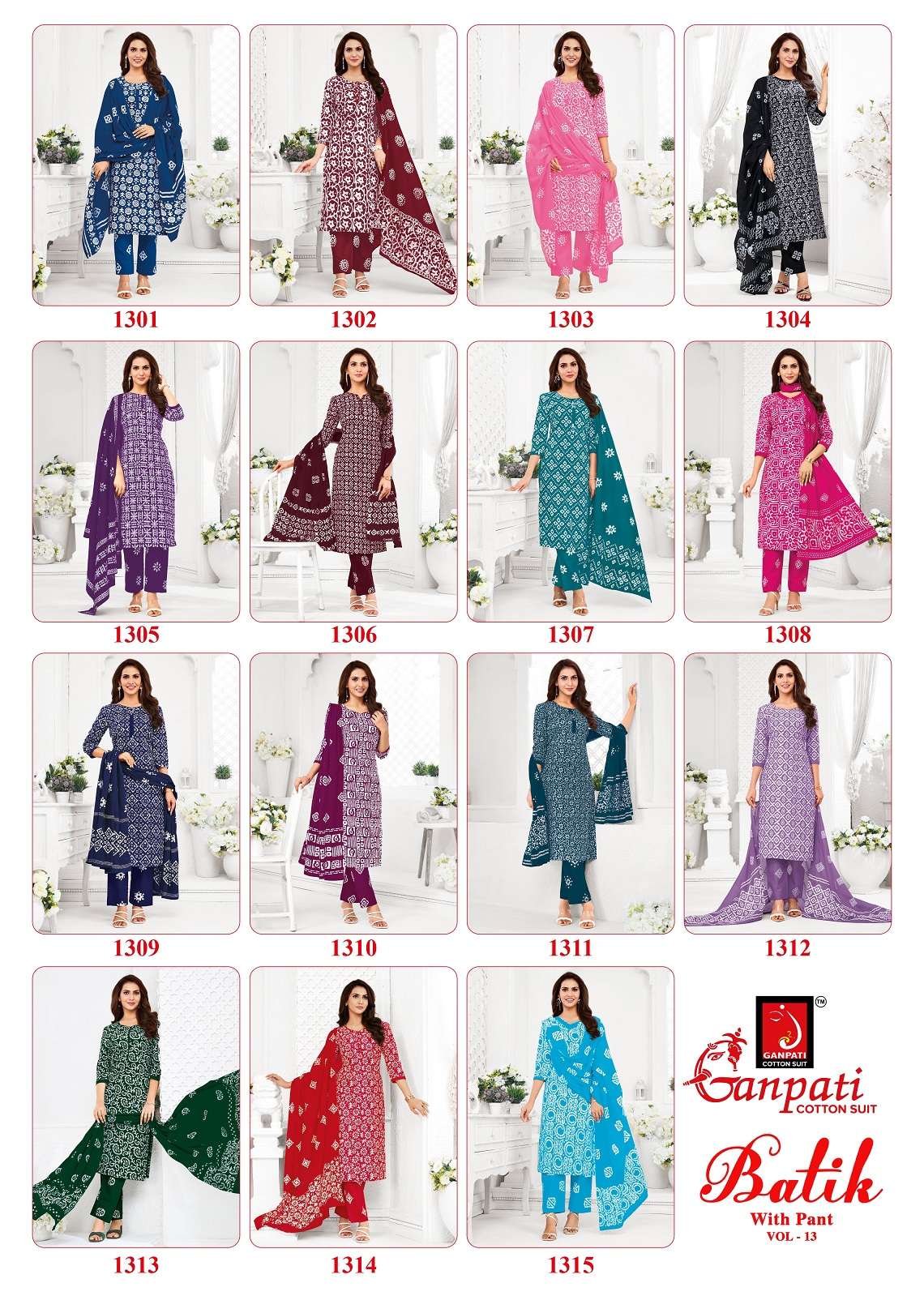 | Name: | Ganpati Batik Vol-13 Series 1301-1315 Pure Cotton Wholesale Suit In Surat |