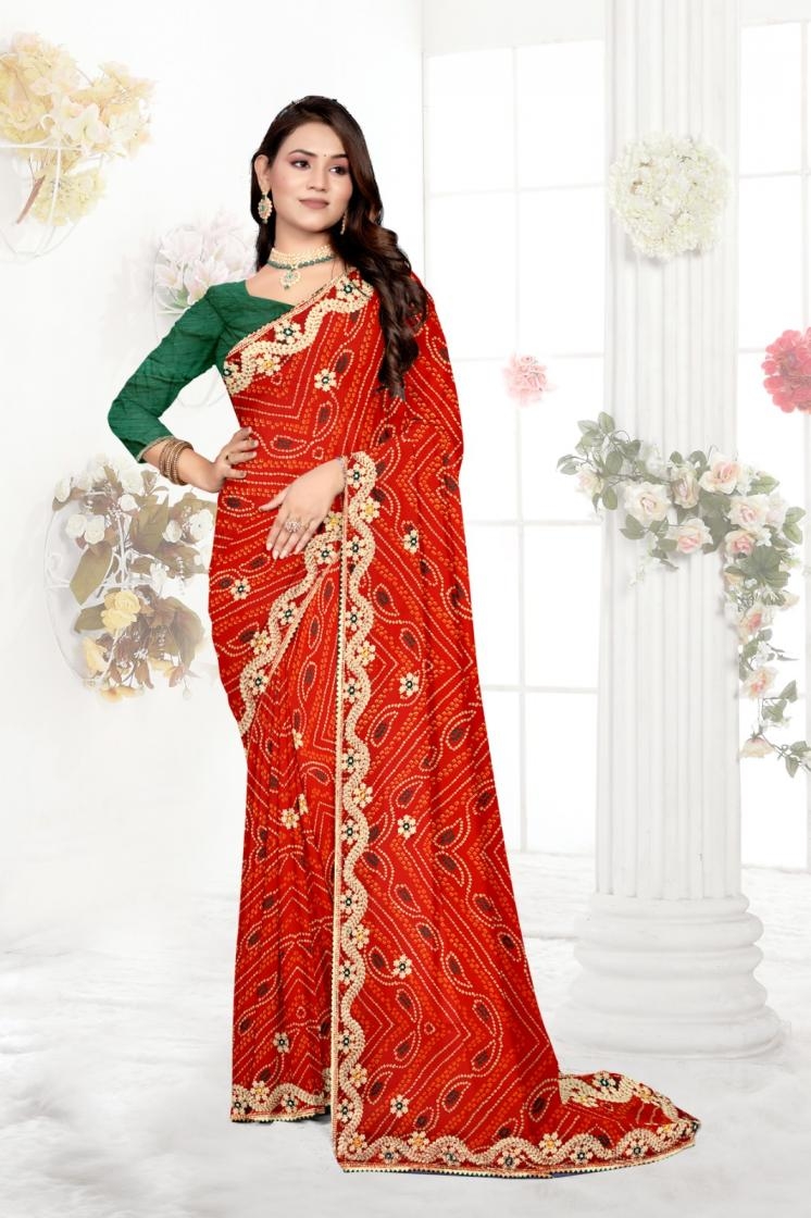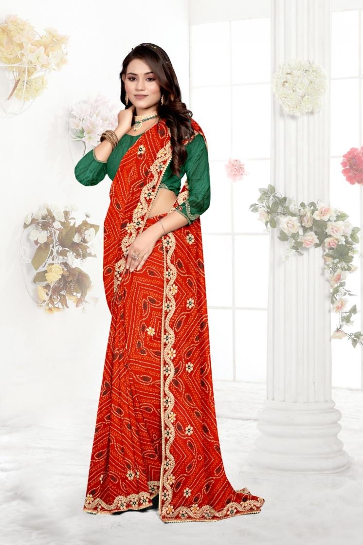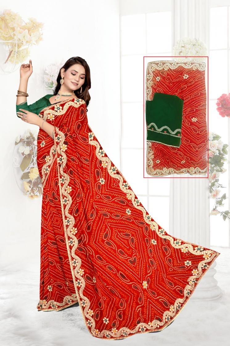 Other Details: | Georgette bandhani with blouse Rate - 540 + gst Moq - 3 pc |