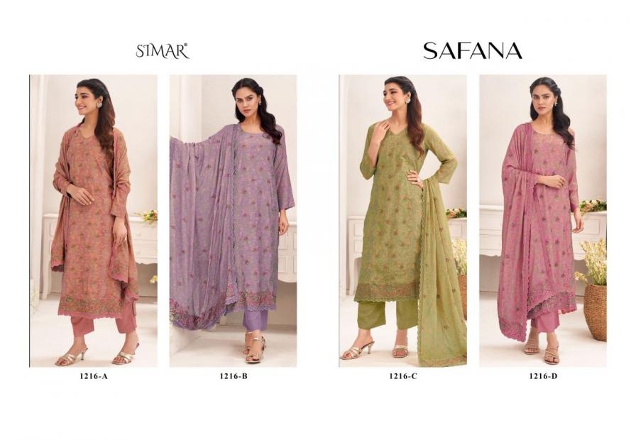 | Other Details: | Brand _ Glossy Catalog _ Safana 1216 colour's Fabric Details attached Rate :- ₹2395/- per pcs GST Extra Set to set |