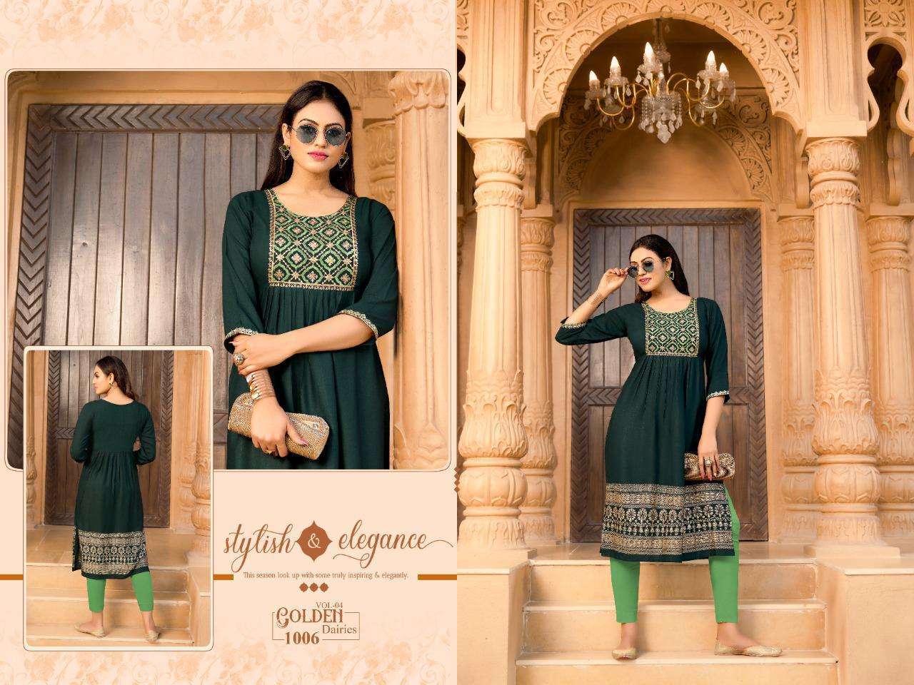 | Name: | Golden Dairies Vol 4 Series 1001-1008 14 Kg Rayon Slub Kurti |