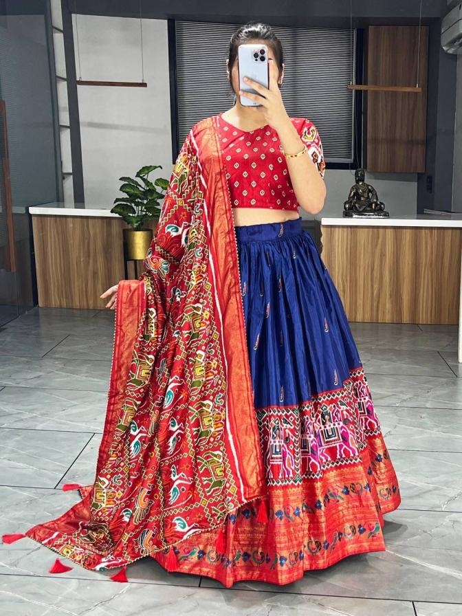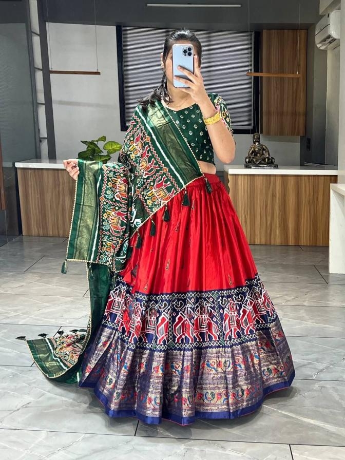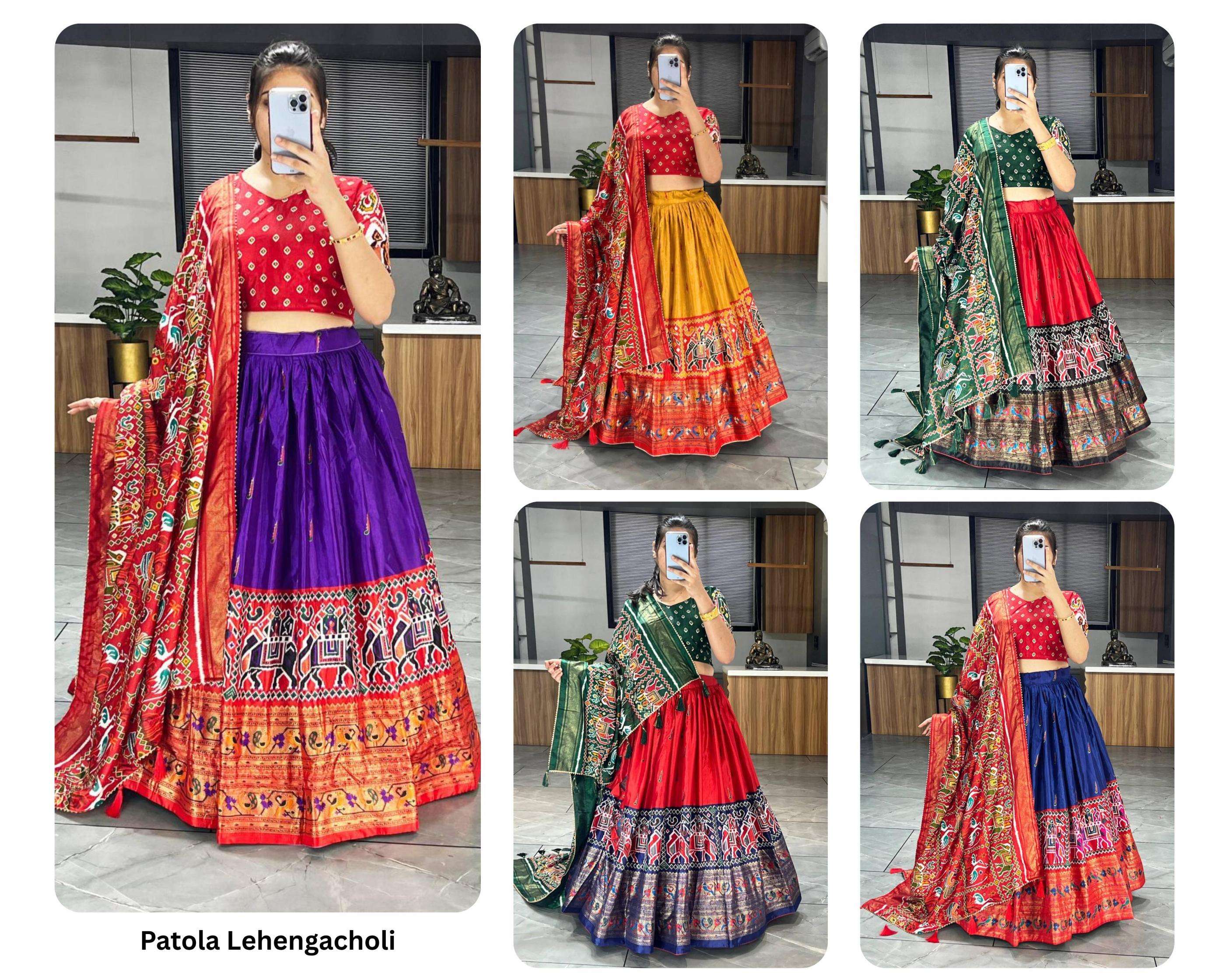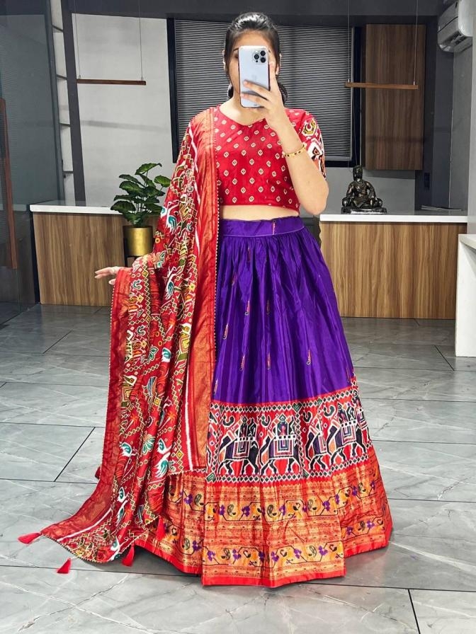 | Other Details: | _🆕Paithani-Patola Lehenga Collection_ 👜 ✨Wedding Dress, This Dola Silk lehenga creation from our patola and paithani combination which looks vibrant, Add on with Paithani Styled Daaman and Patola Dupatta. GRTN7070PRPL Lehenga(Stitched) Blouse(Unstitched) Dupatta Package Contain : Lehenga, Blouse, Dupatta, Drawstring with Zip, Tassels Weight : 1.200 kg