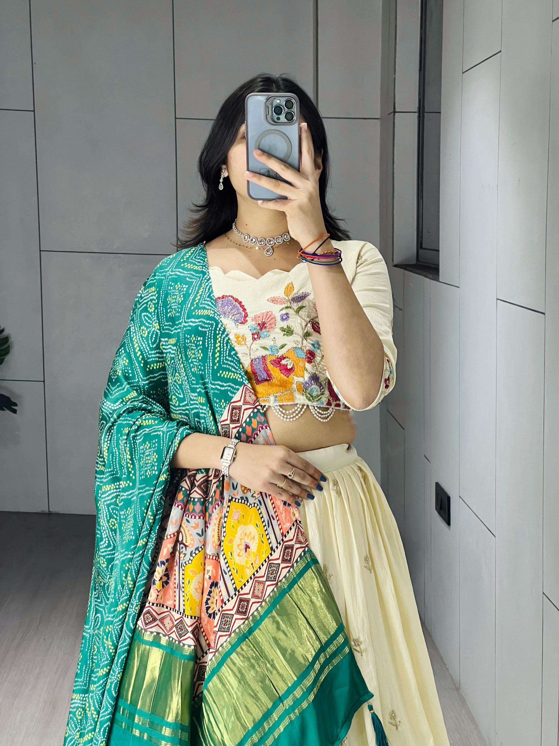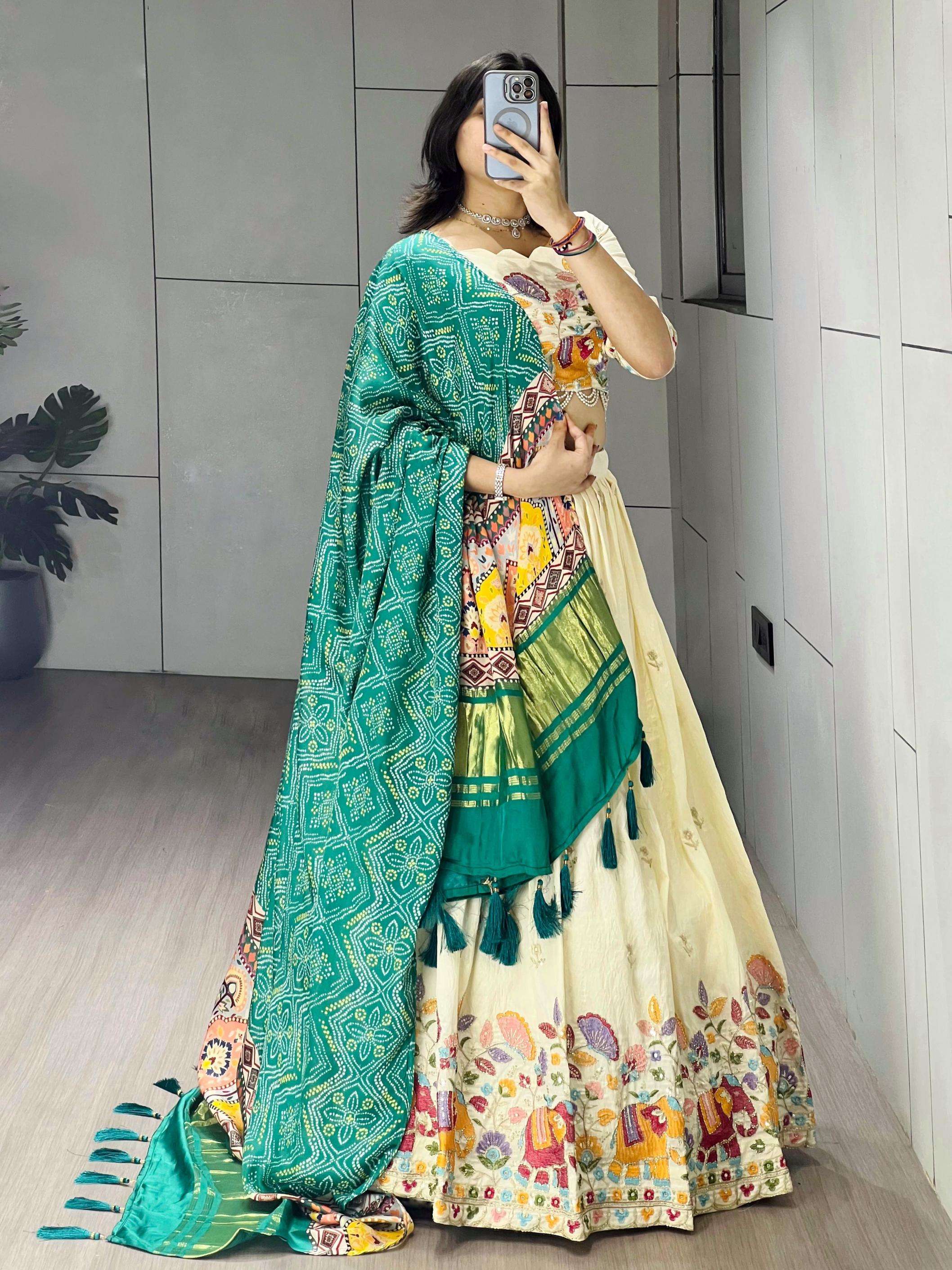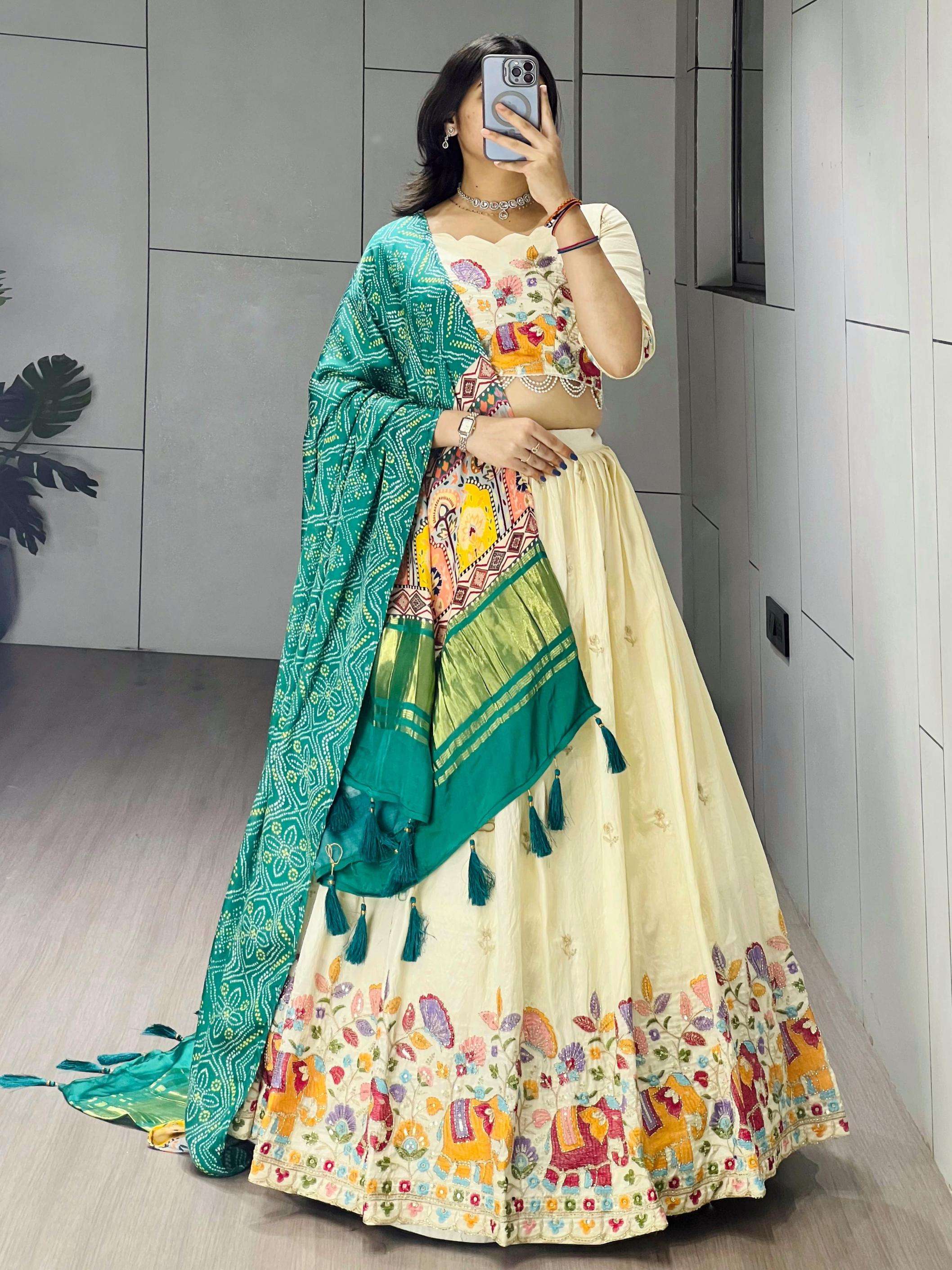 | Other Details: | Traditional Ethnic Lehenga Choli👜 ✨ 🥰Pure Grace: Crafted in Crush Vichitra with delicate embroidery, a must-have for traditional occasions,Intricate embroidery enhances the natural texture of Vichitra, creating a graceful ethnic statement. ✨👜 GRTN8138CRMRAMA Lehenga(Stitched) Blouse(UnStitched) Dupatta Package Contain: Lehenga (Fully Stitched), Blouse(Unstitched) , Gaji Dupatta, Drawstring with Zip, Tassels
